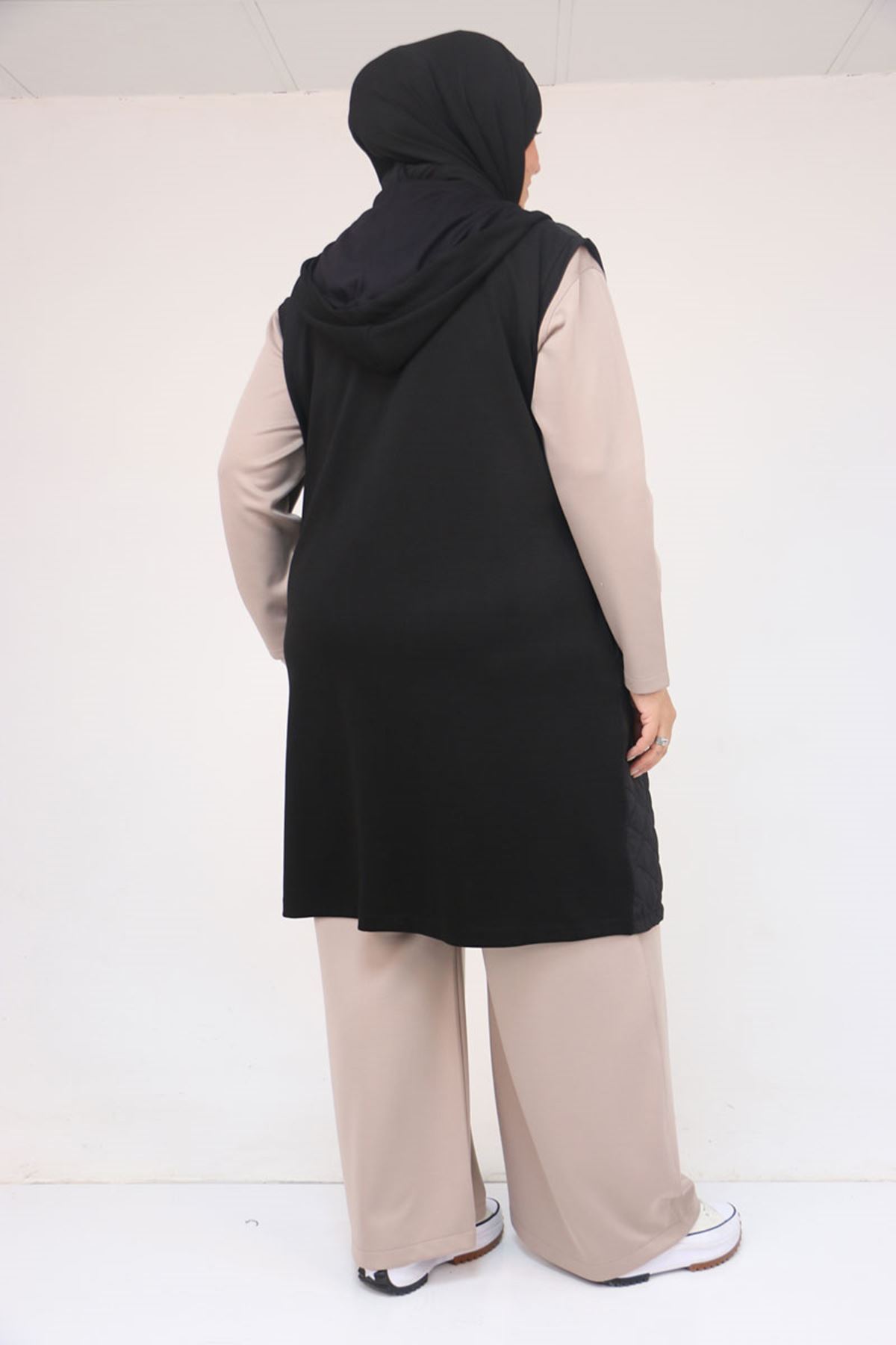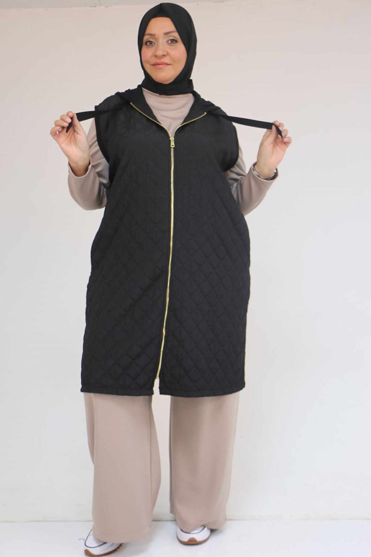54009 Büyük Beden Kapitone - Modal Yelek - Siyah