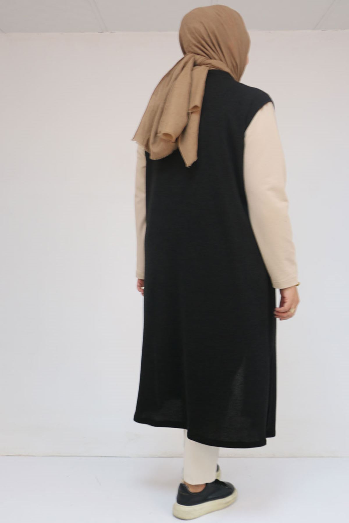 54012 Büyük Beden Cepli Giy-Çık Mir Yelek - Siyah