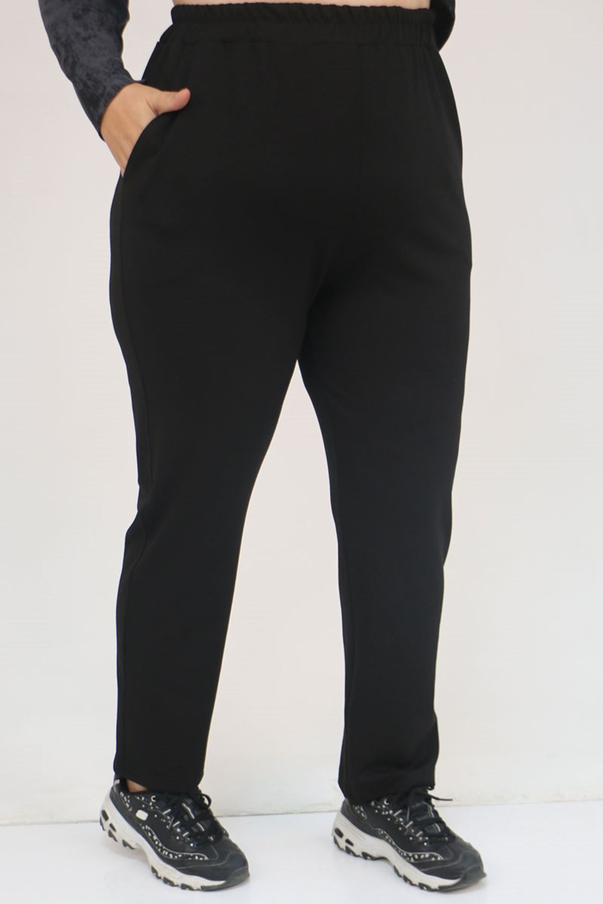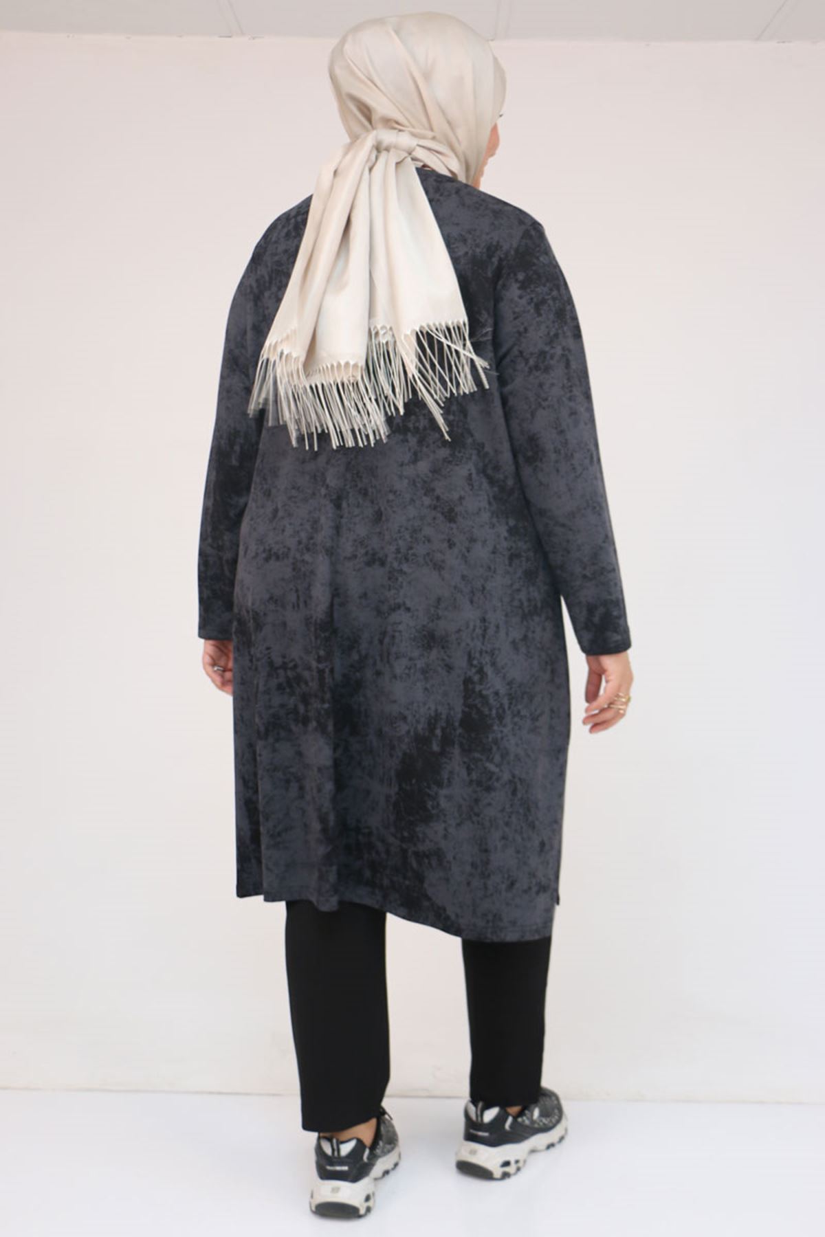 57070 Büyük Beden Önü Simetri Kesim Batik Pantolonlu Takım - Siyah