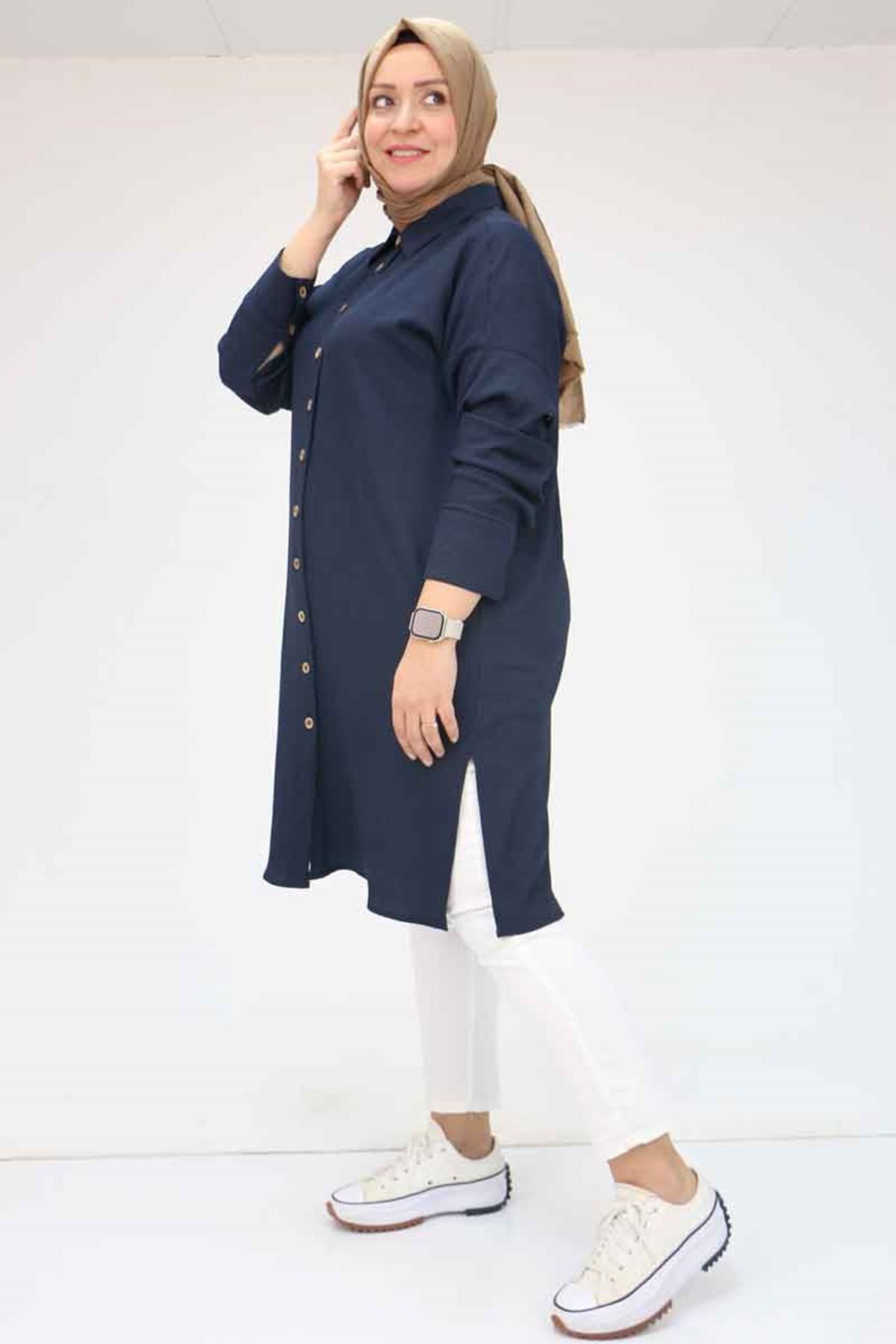 58043 Büyük Beden Düşük Kol Bürümcük Gömlek - Lacivert
