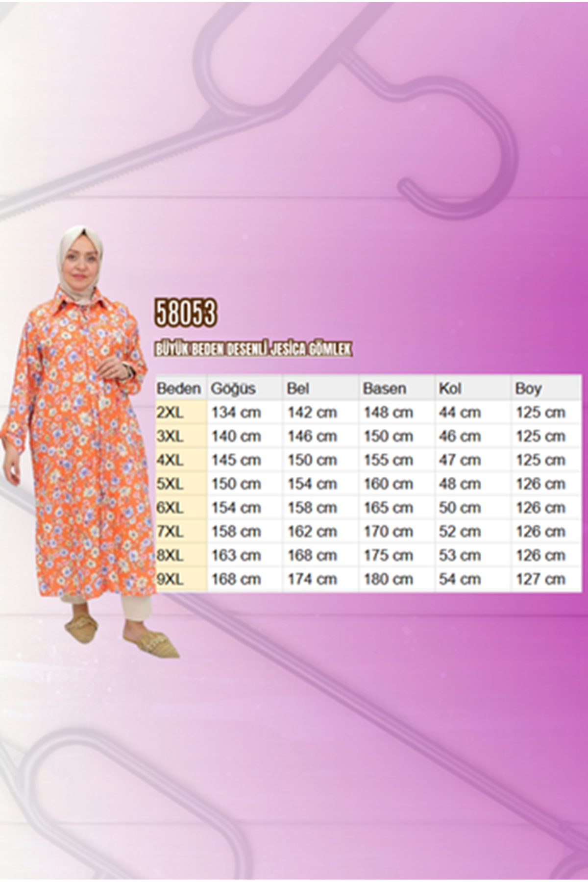 58053 Büyük Beden Desenli Jesica Gömlek - Ebruli Kahve