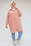 58054 Büyük Beden Düşük Kol Manşetli Keten Gömlek - Nefti