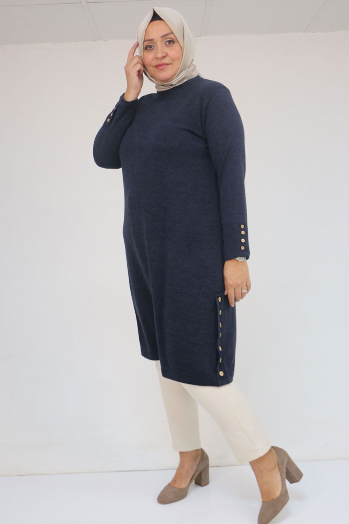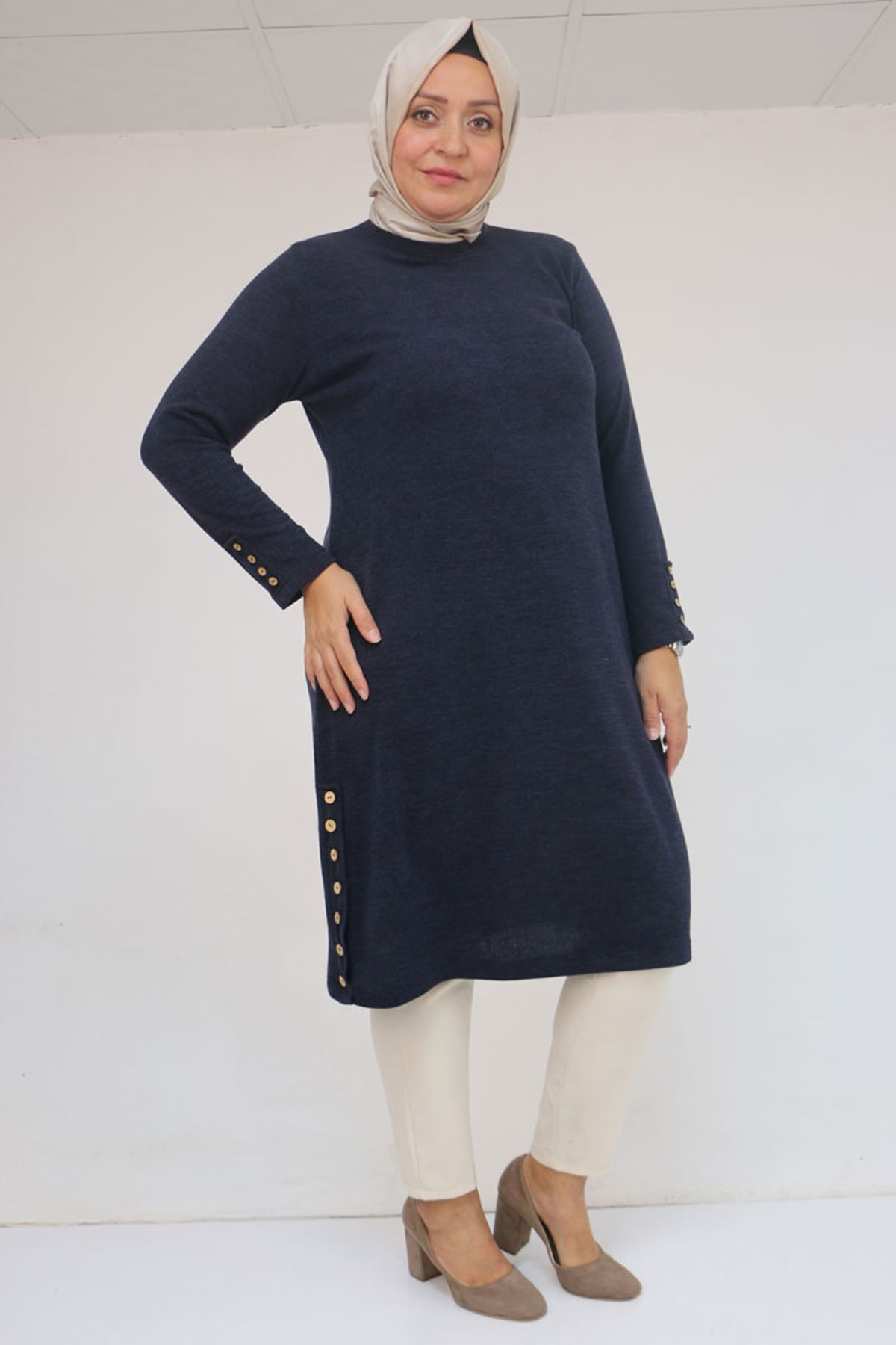 58109 Büyük Beden Patlı Düğmeli Mir Tunik - İndigo