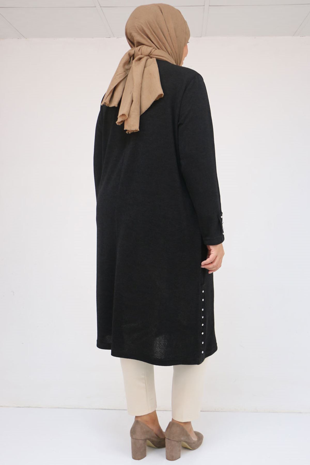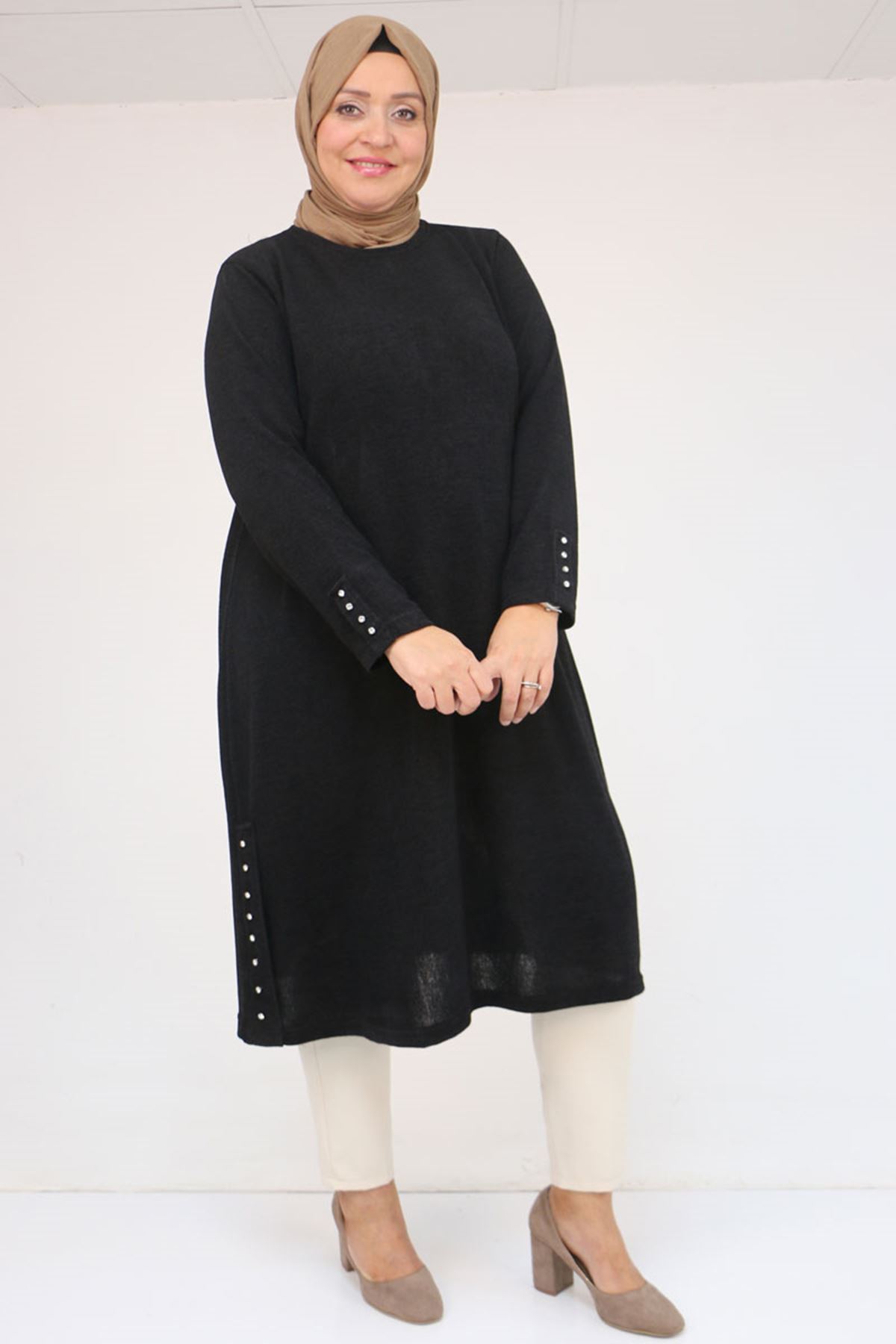 58109 Büyük Beden Patlı Düğmeli Mir Tunik - Siyah