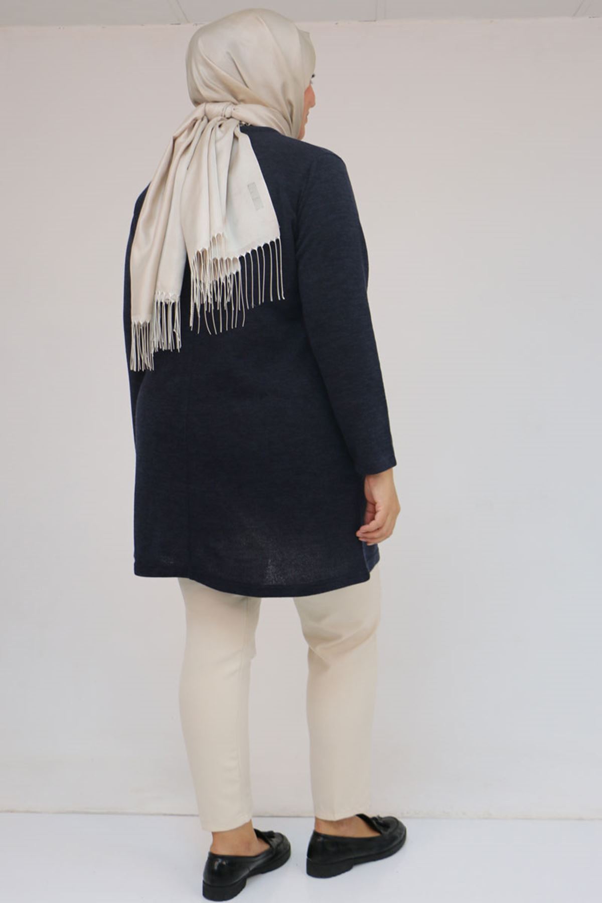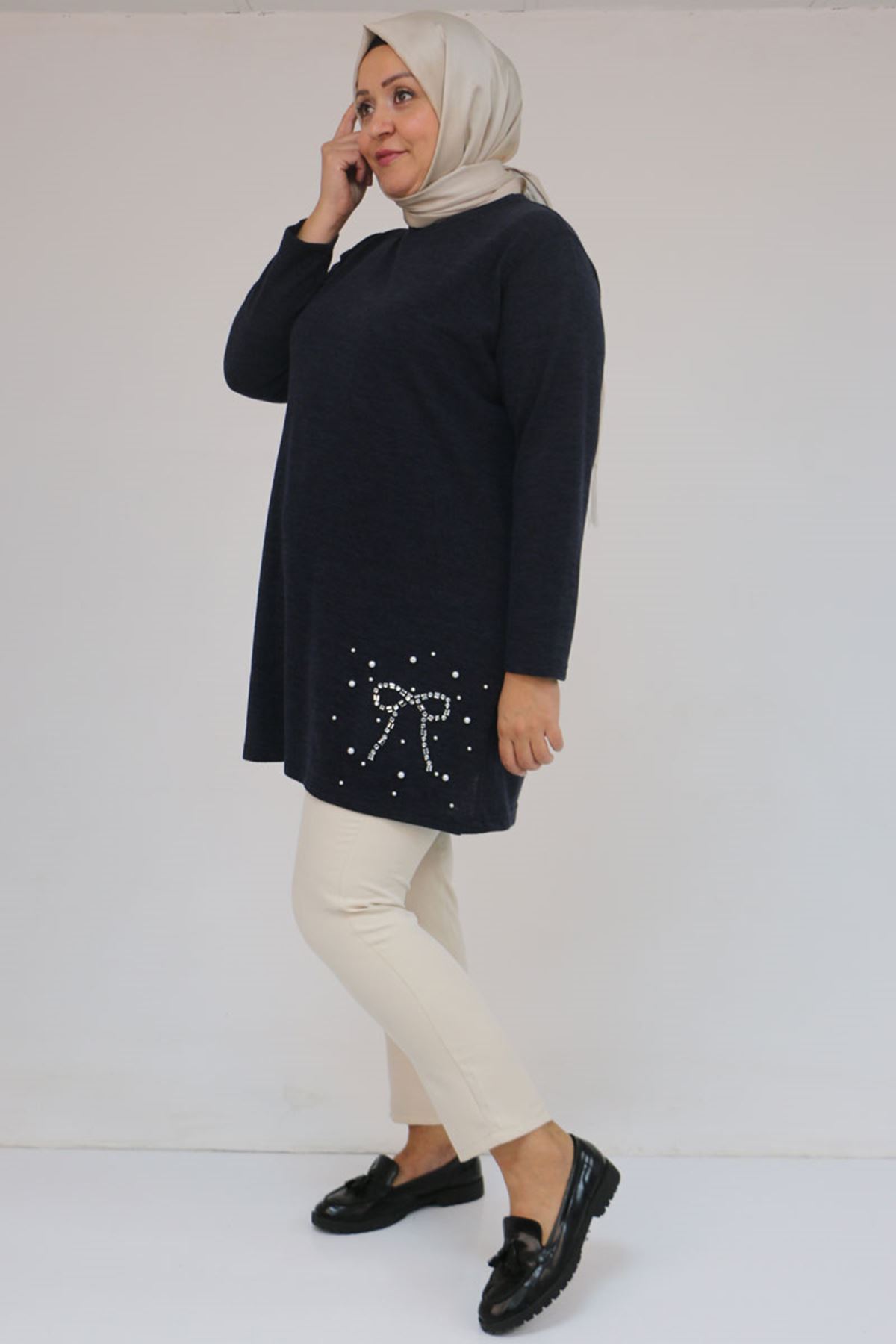 58111 Büyük Beden Önü Taş Detaylı Mir Tunik - Lacivert