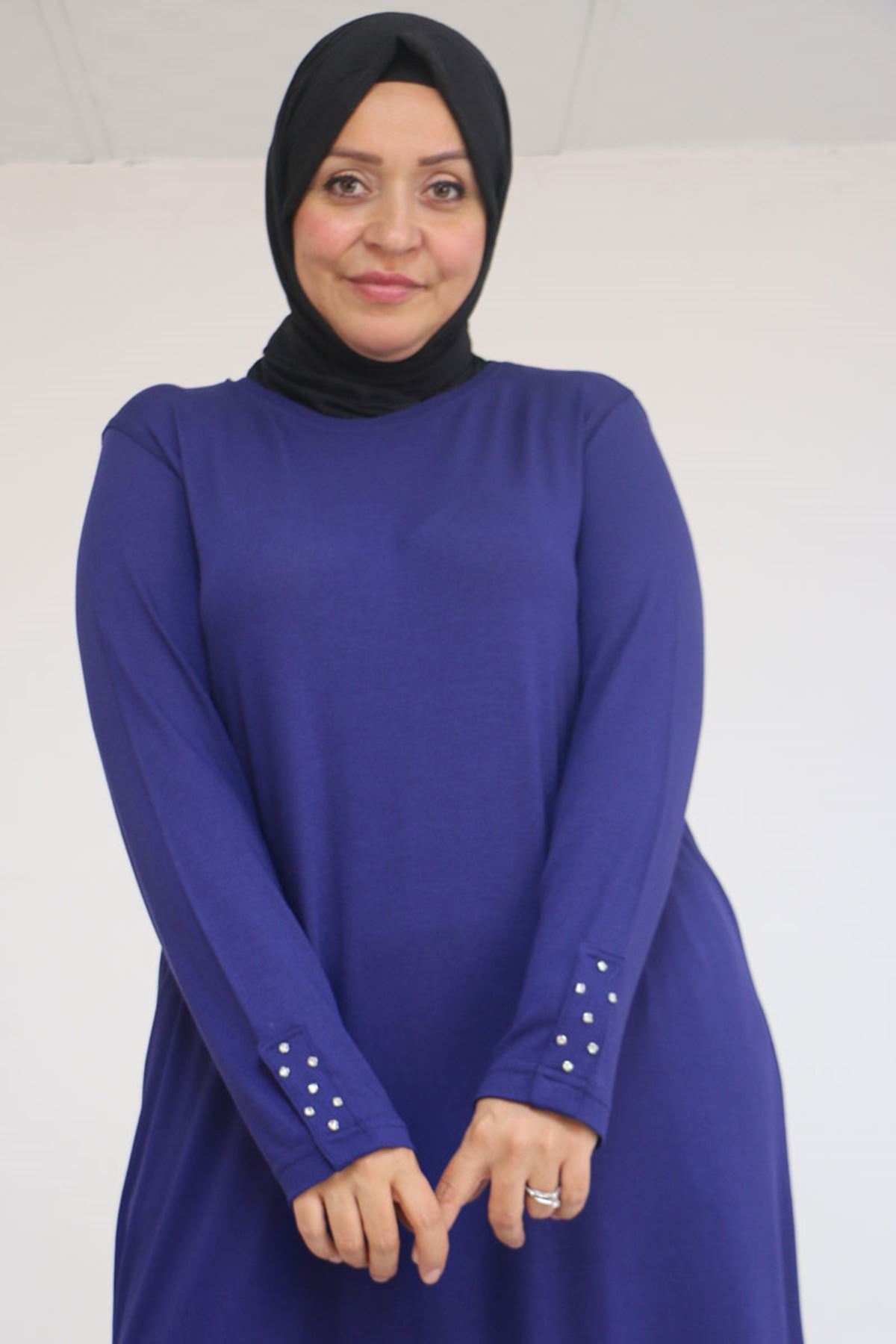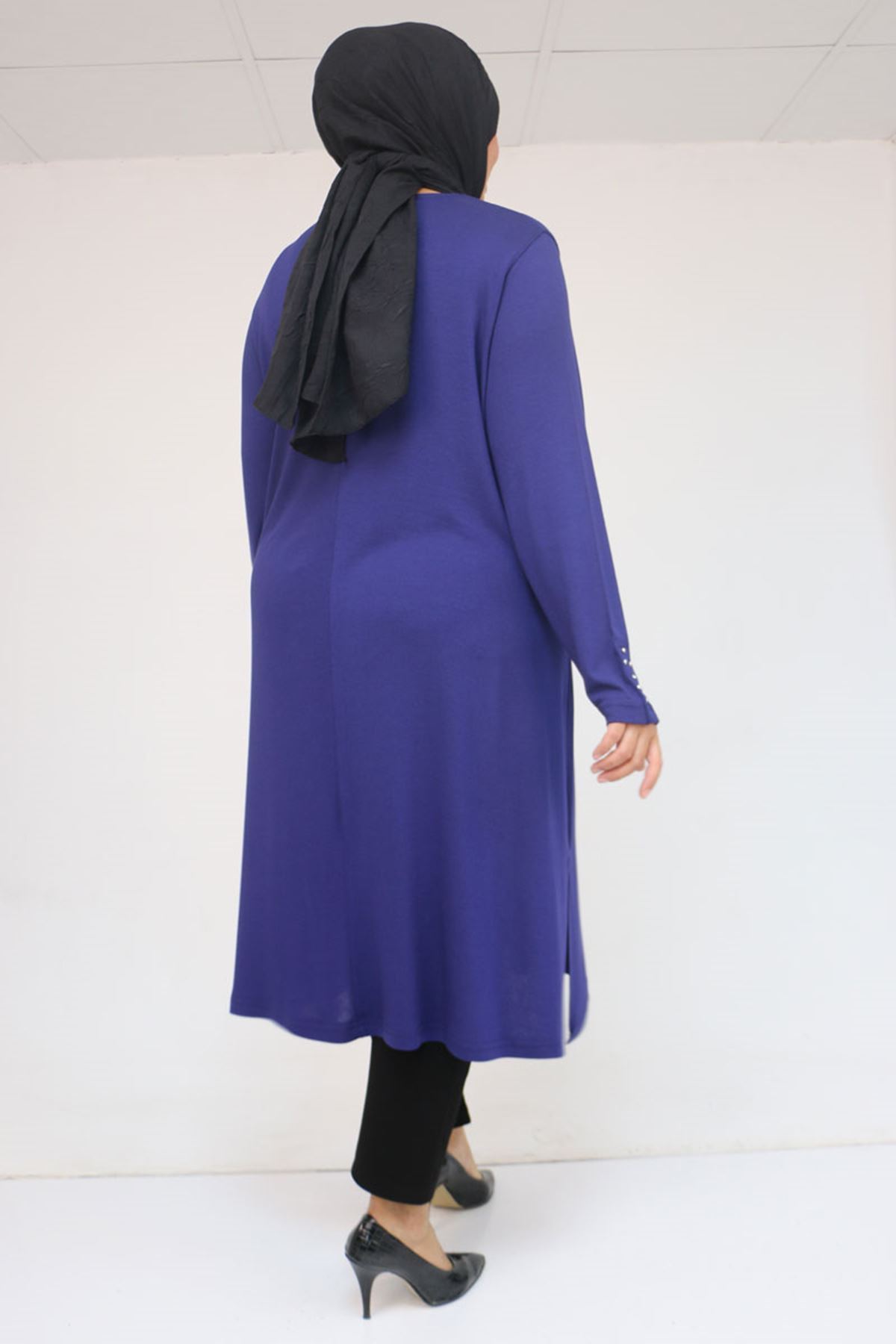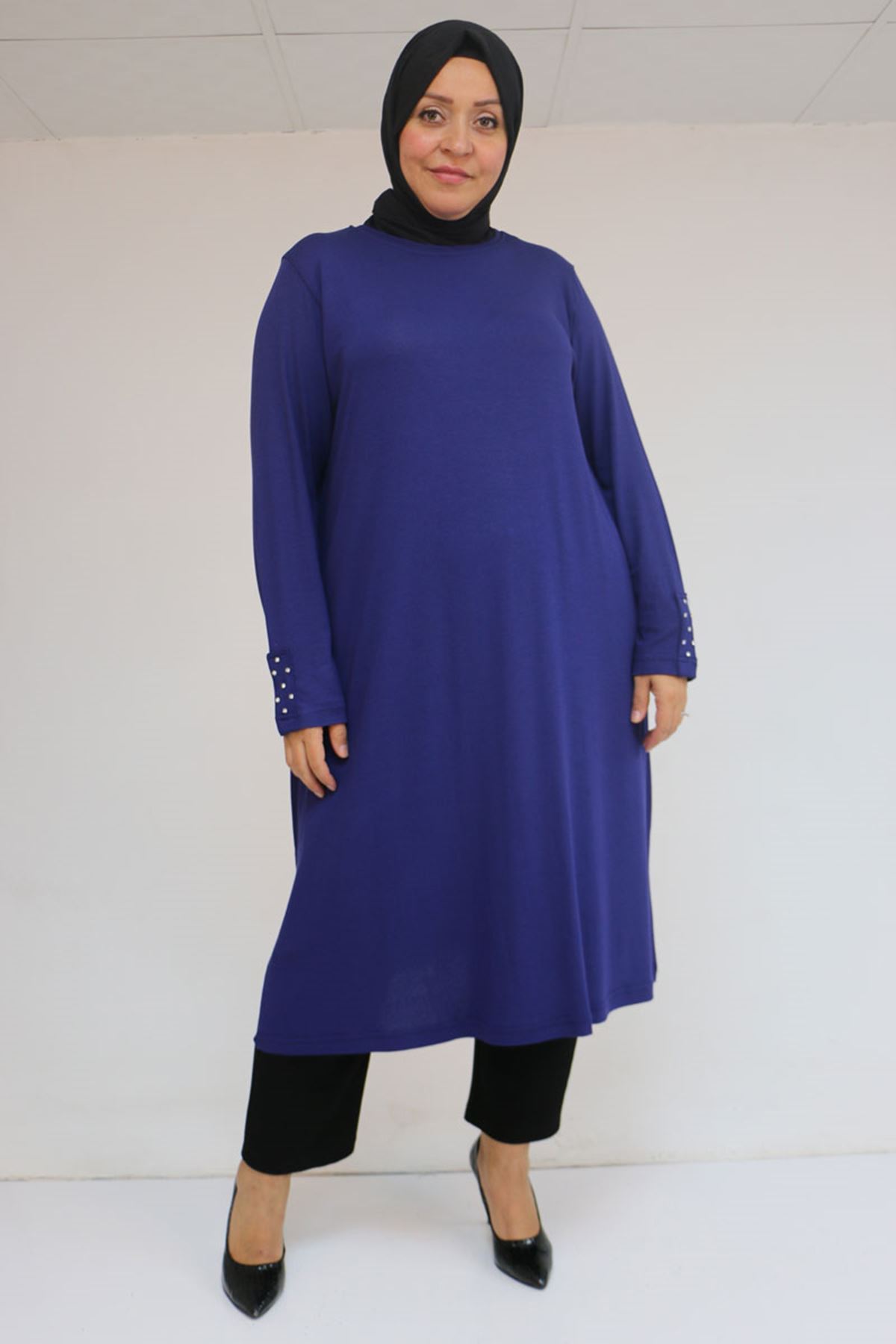 58115 Büyük Beden Kolunda Beyoğlu Detaylı Çilek Tunik - İndigo