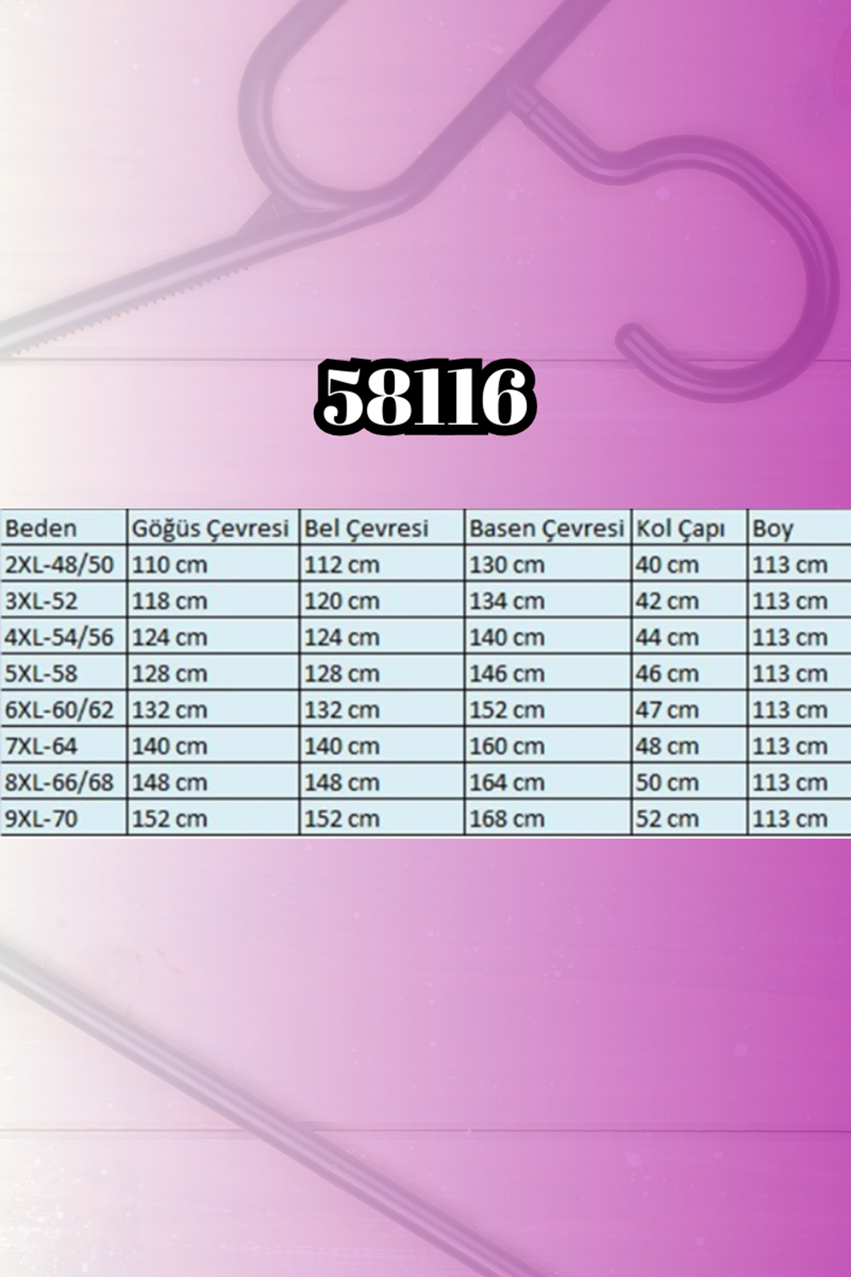 BEL GENİŞLİĞİ :88 cm GÖĞÜS GENİŞLİĞİ :103 cm BASEN :116 cm