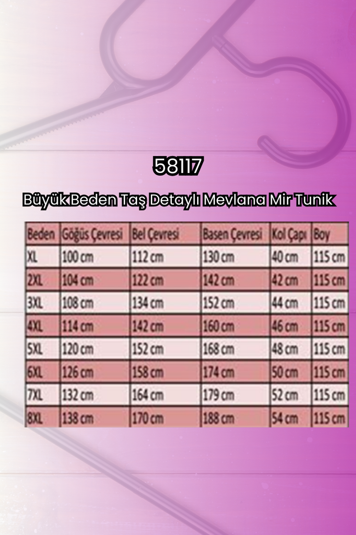 58117 Büyük Beden Taş Detaylı Mevlana Mir Tunik - İndigo