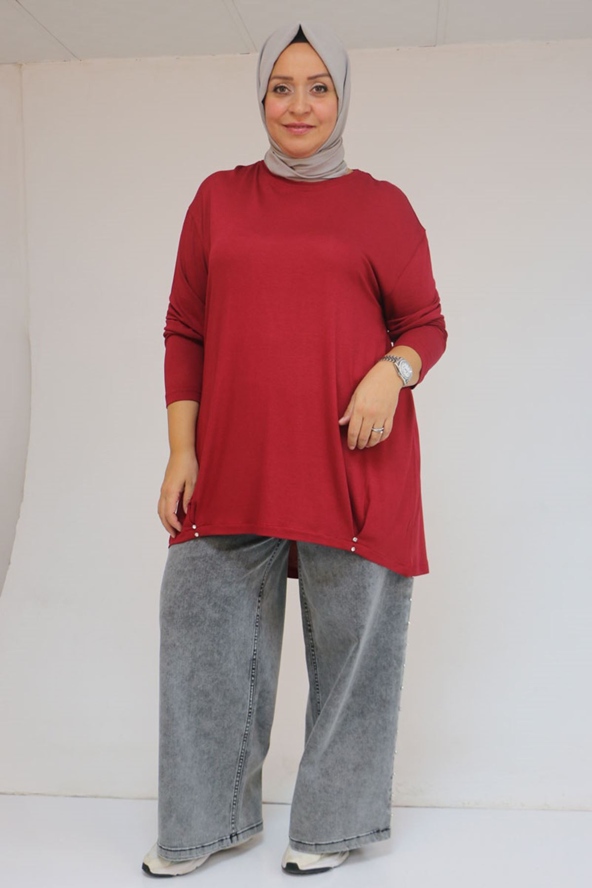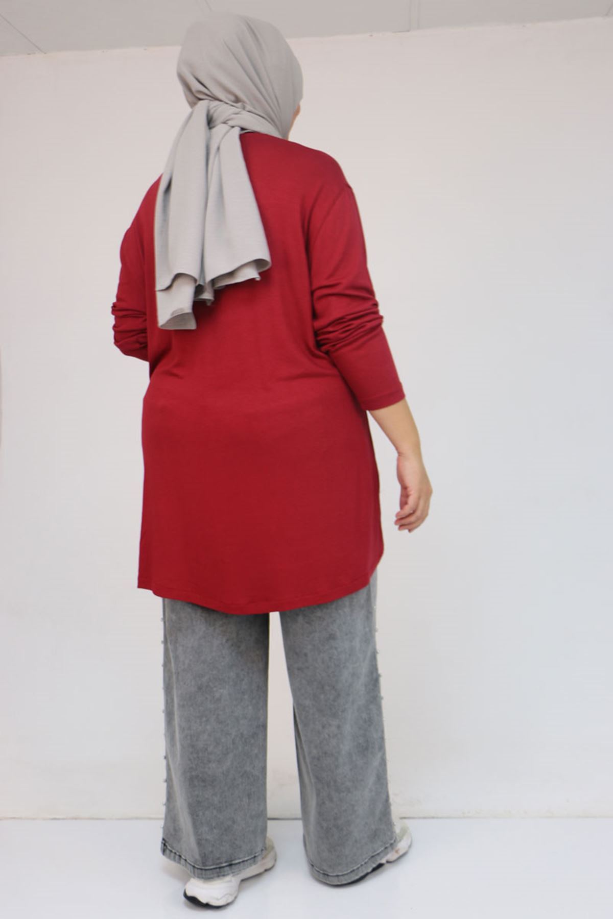 58121 Büyük Beden Yanları Biyeli Çilek Tunik - Bordo
