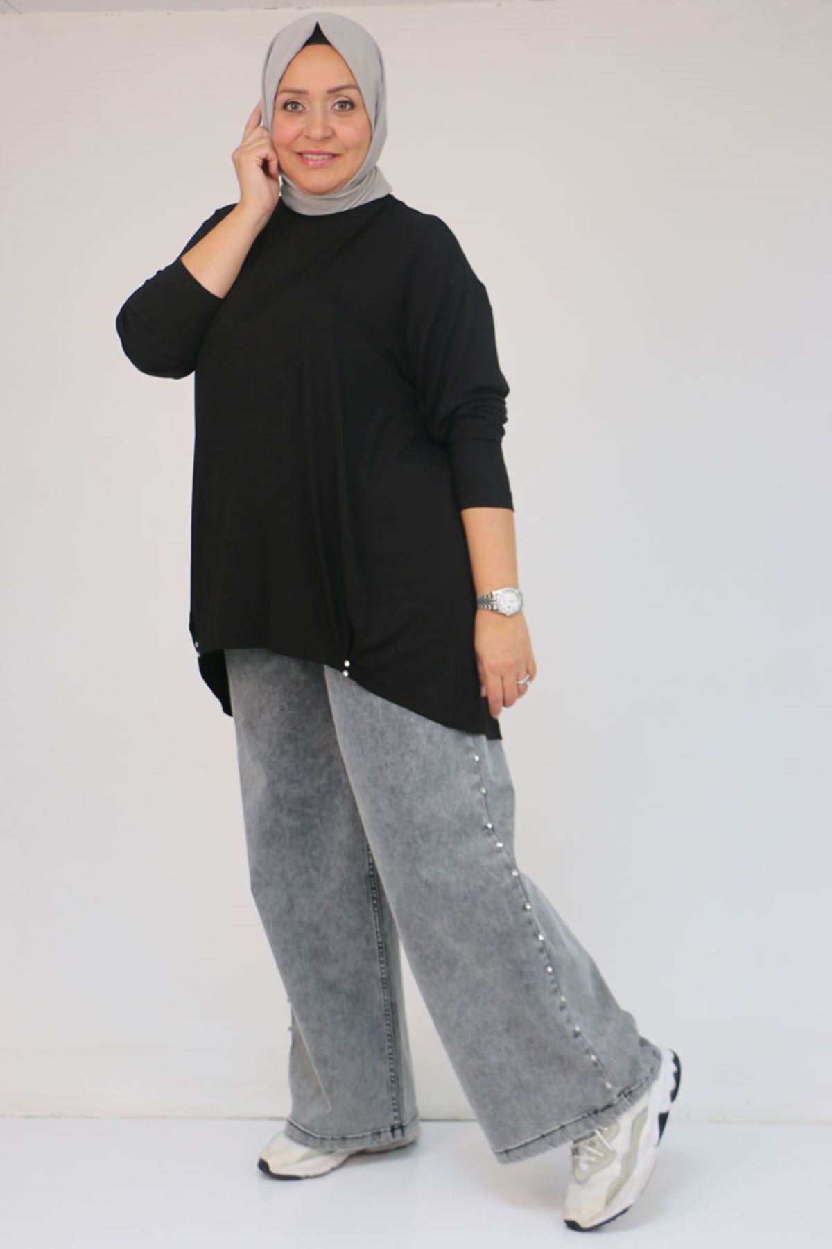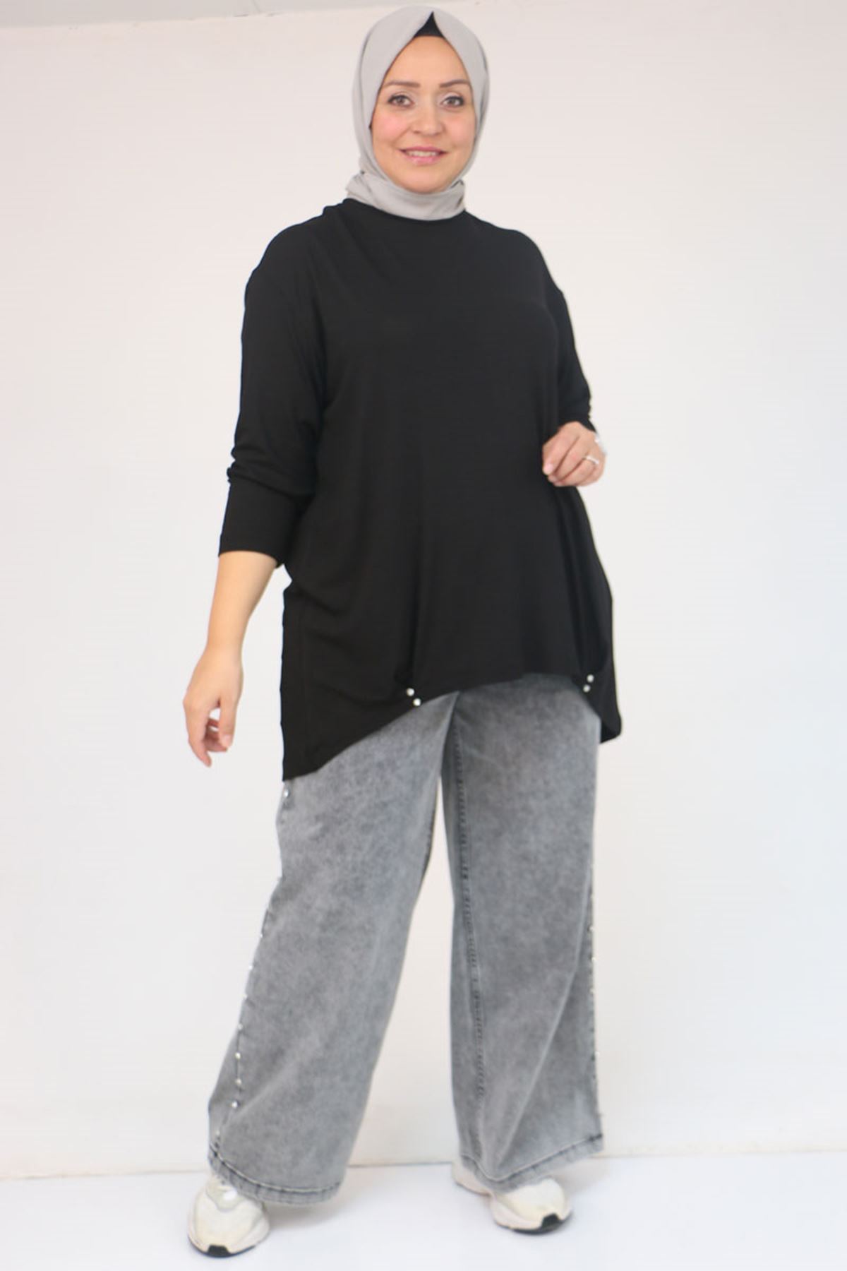 58121 Büyük Beden Yanları Biyeli Çilek Tunik - Siyah