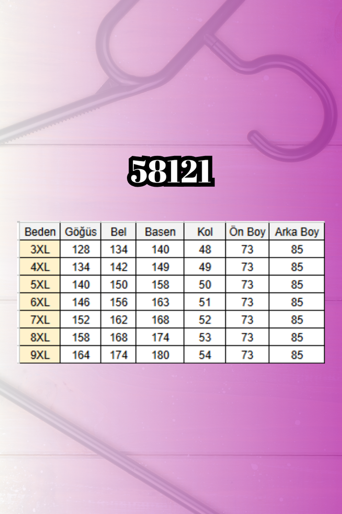 BEL GENİŞLİĞİ :88 cm GÖĞÜS GENİŞLİĞİ :103 cm BASEN :116 cm