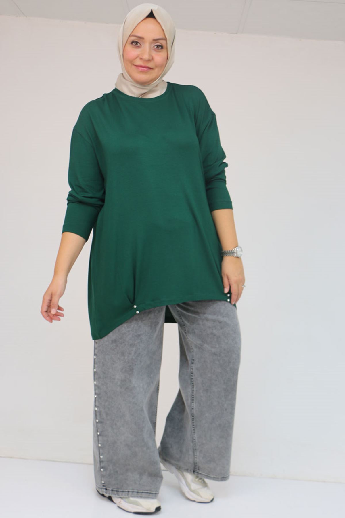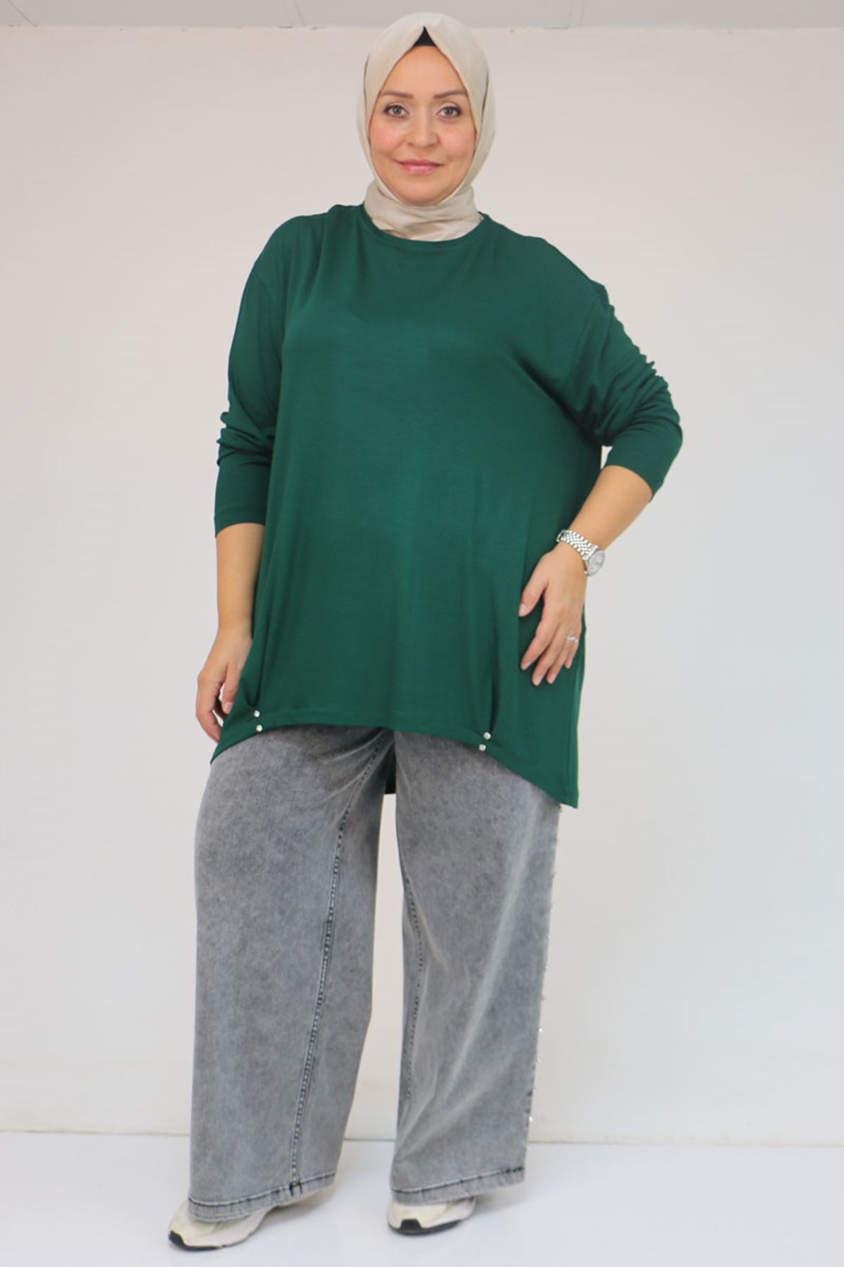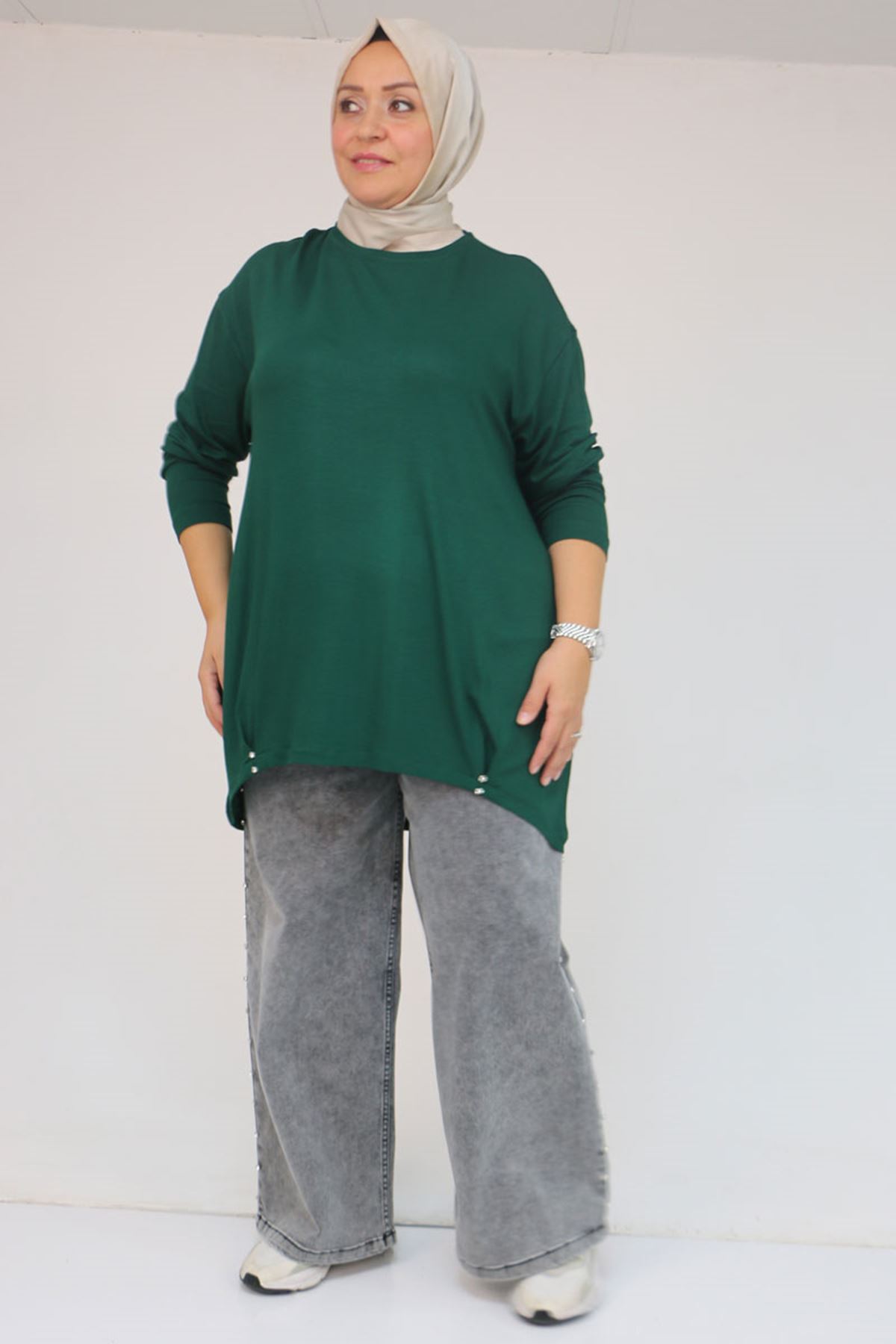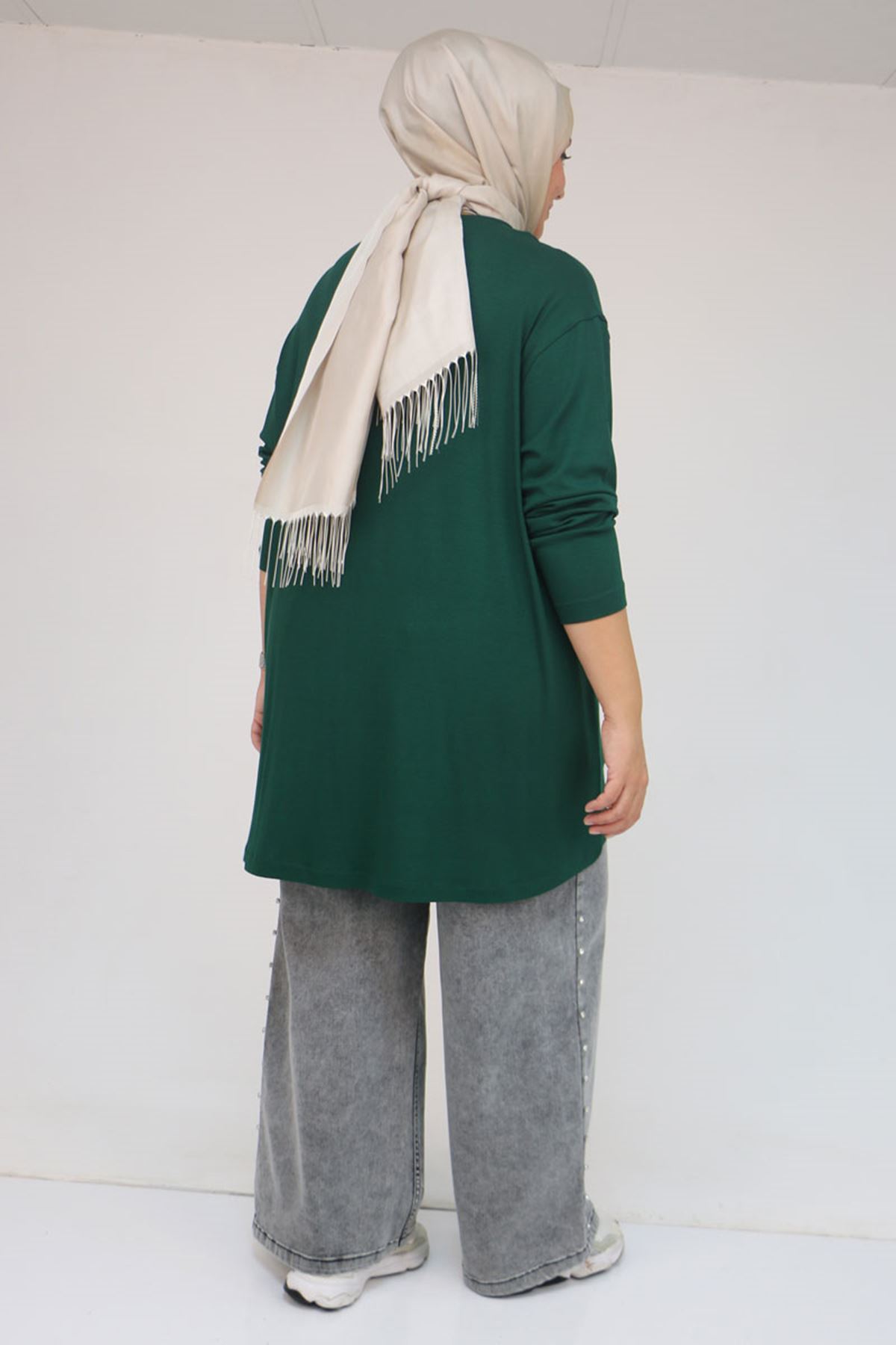 58121 Büyük Beden Yanları Biyeli Çilek Tunik - Zümrüt