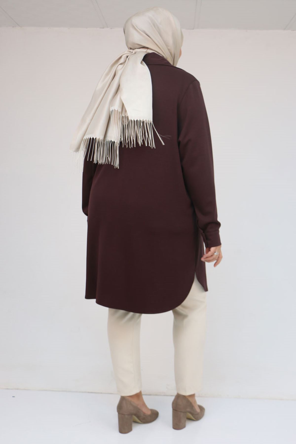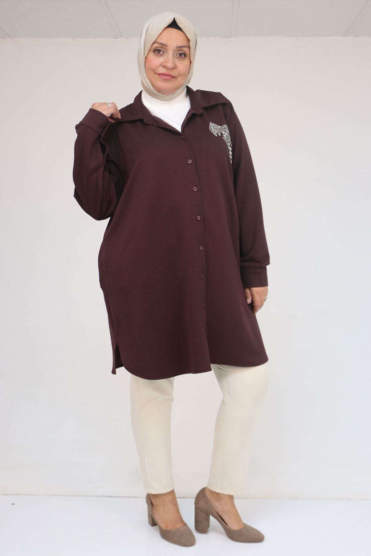 58126 Büyük Beden Düğmeli Aksesuar Detaylı Modal Tunik - Kahve