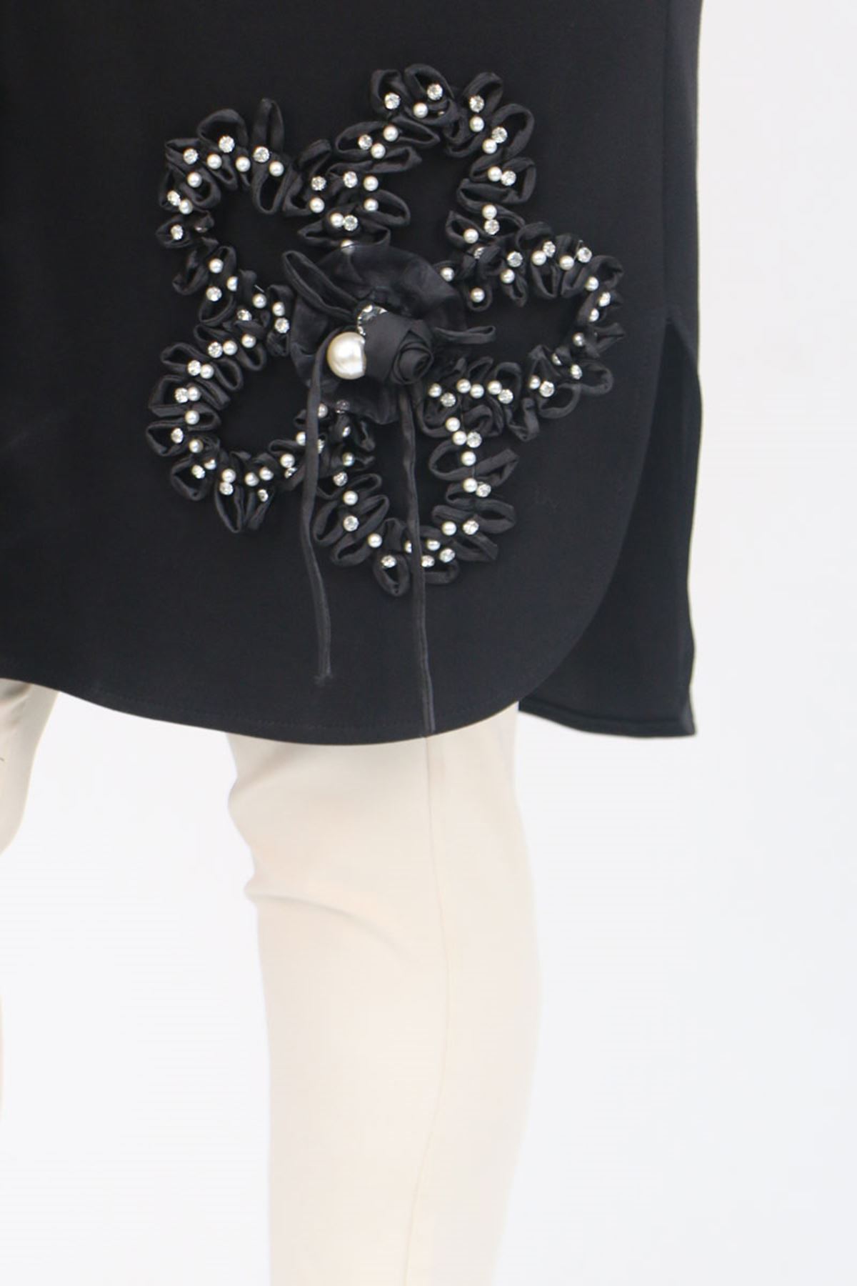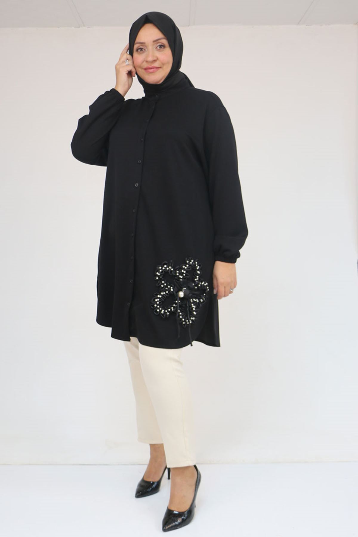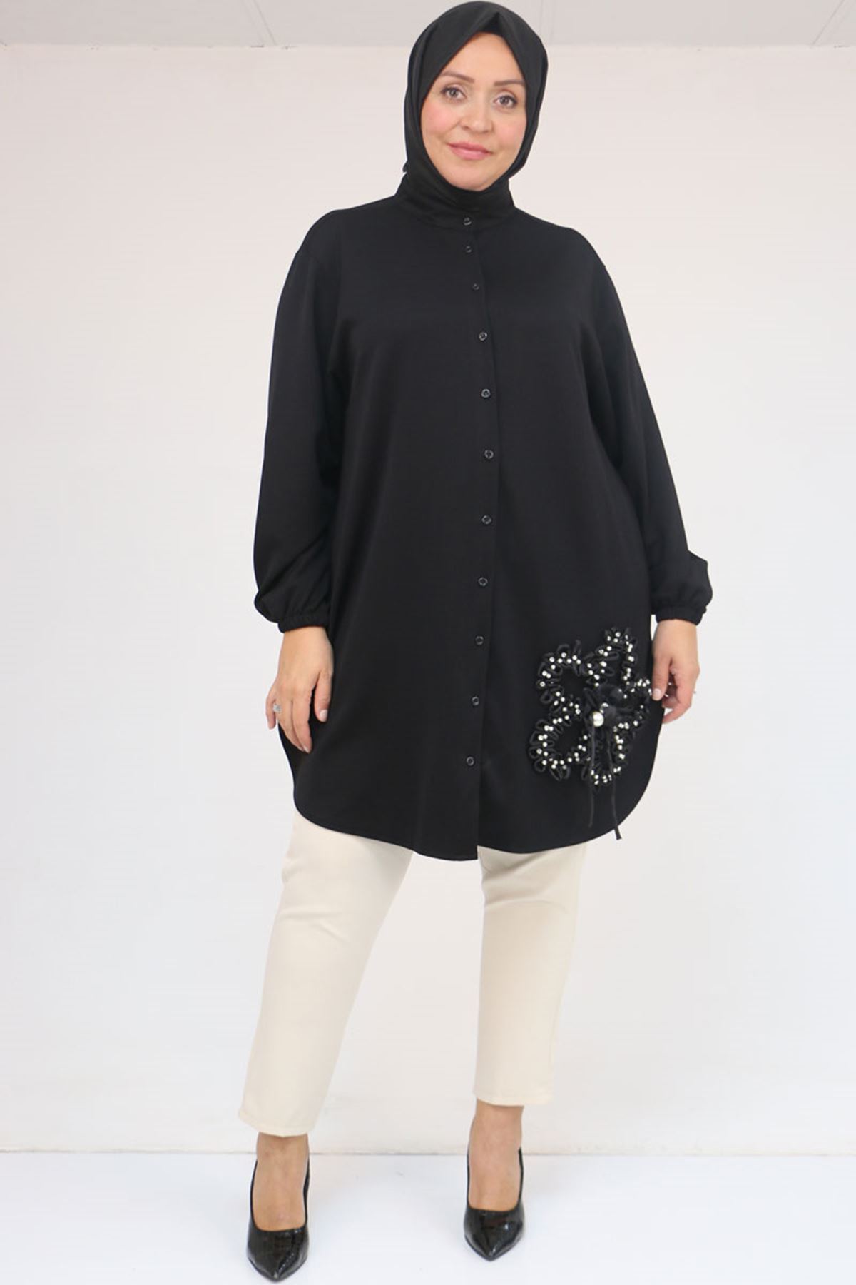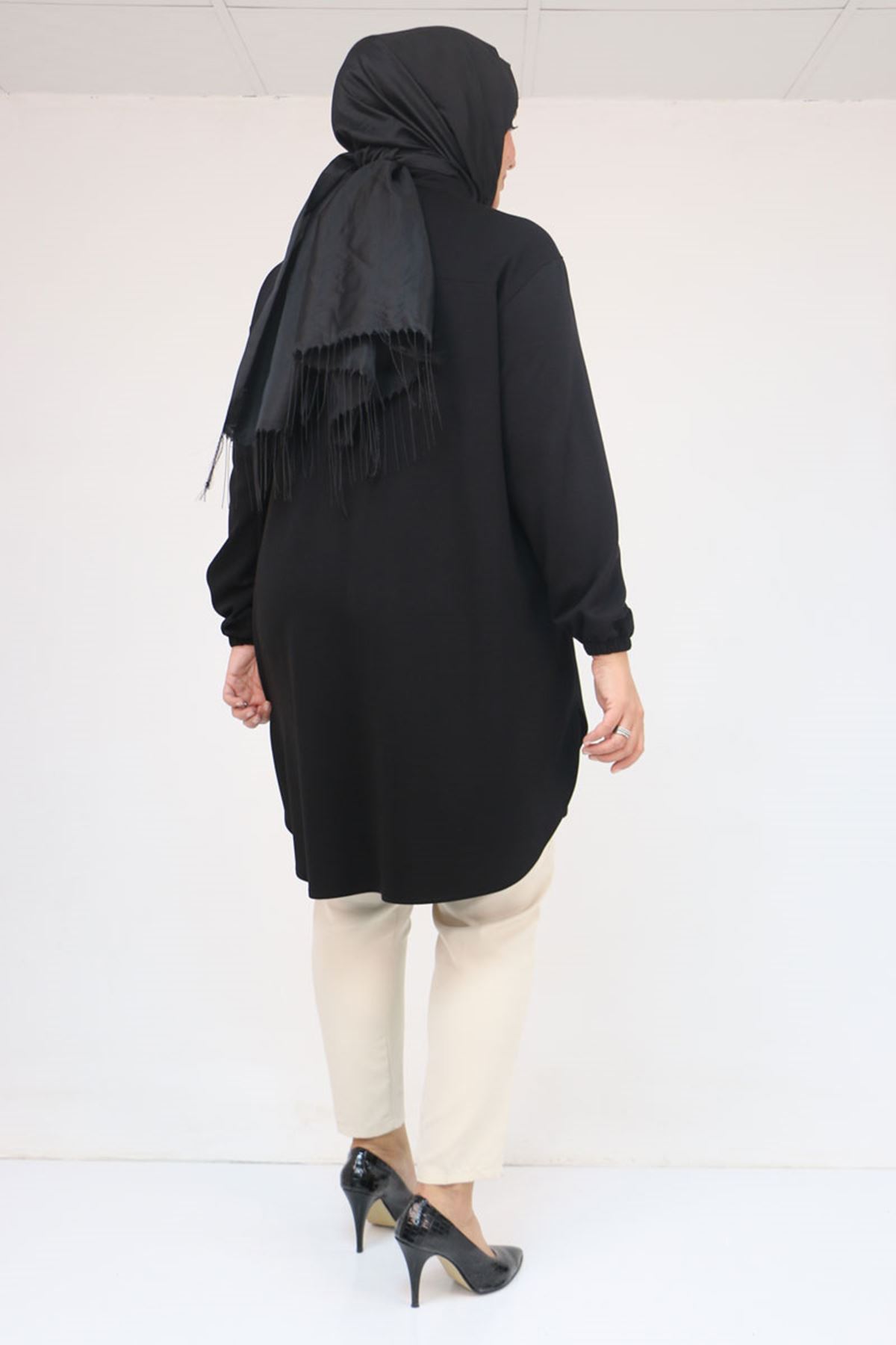 58127 Büyük Beden Hakim Yaka Aksesuar Detaylı Modal Tunik - Siyah