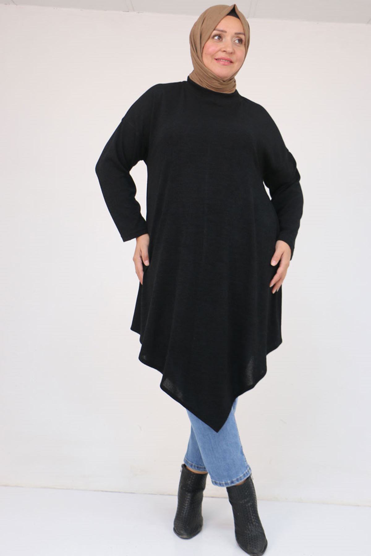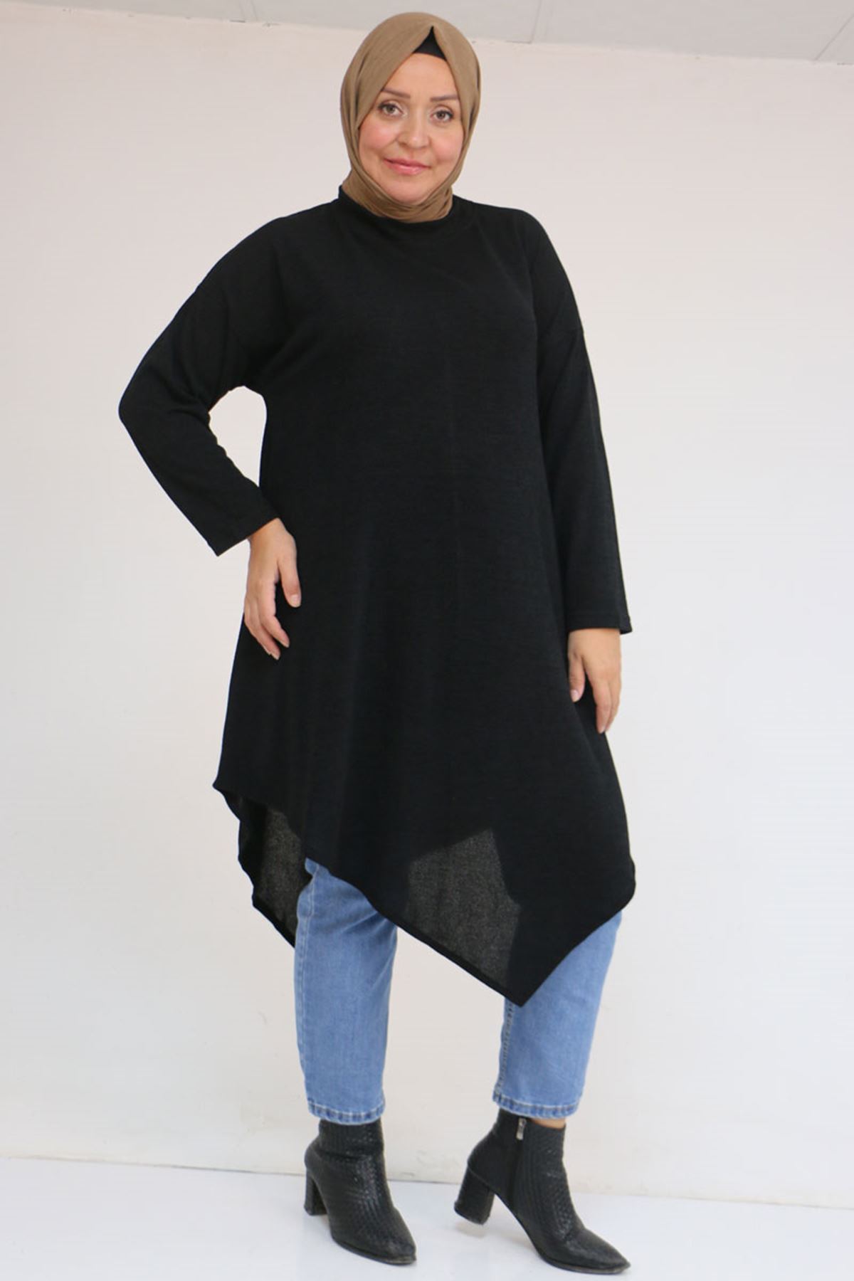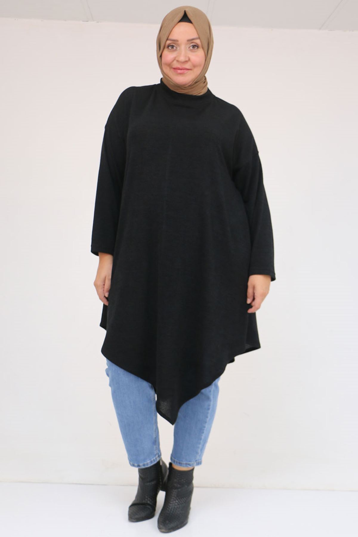 58144 Büyük Beden Hakim Yakalı Mir Tunik - Siyah