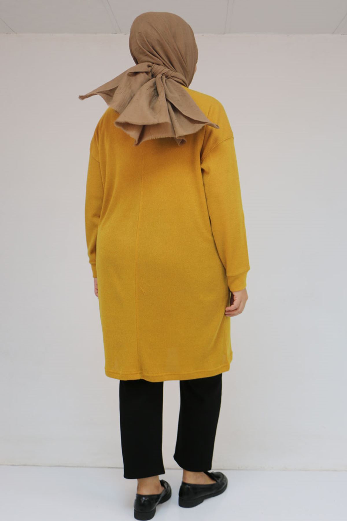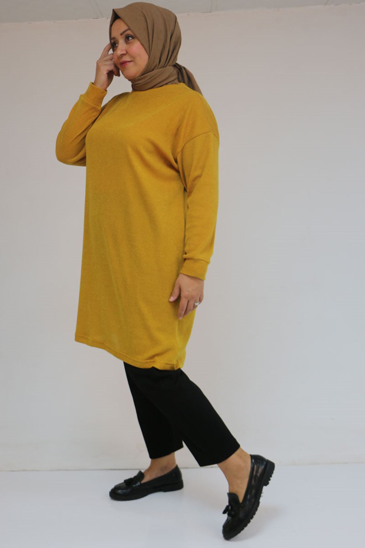 58148 Büyük Beden Düşük Kollu Mir Tunik - Hardal