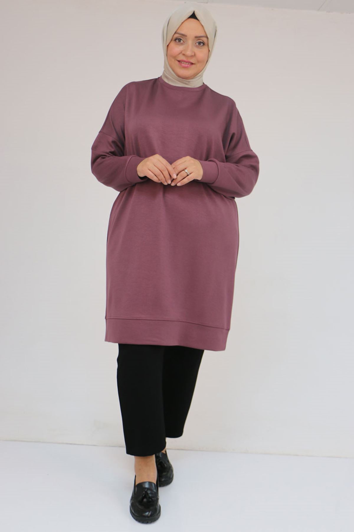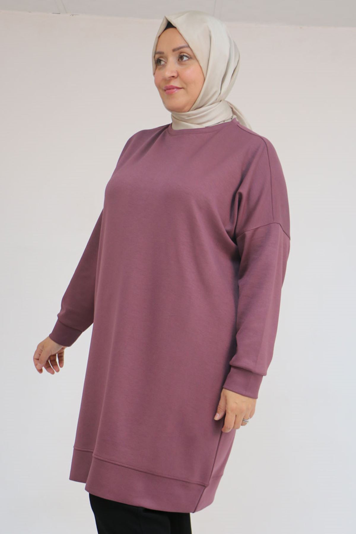 58151 Büyük Beden Kol Ve Etek Ucu Kendinden Ribanalı Modal Tunik - Gül Kurusu
