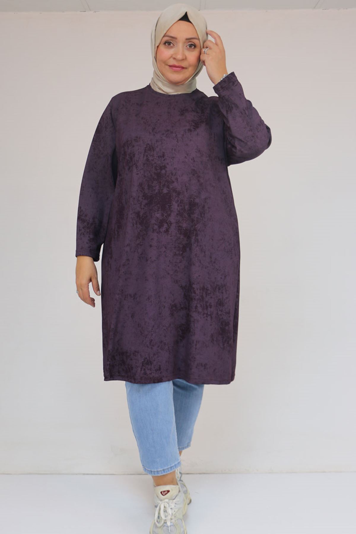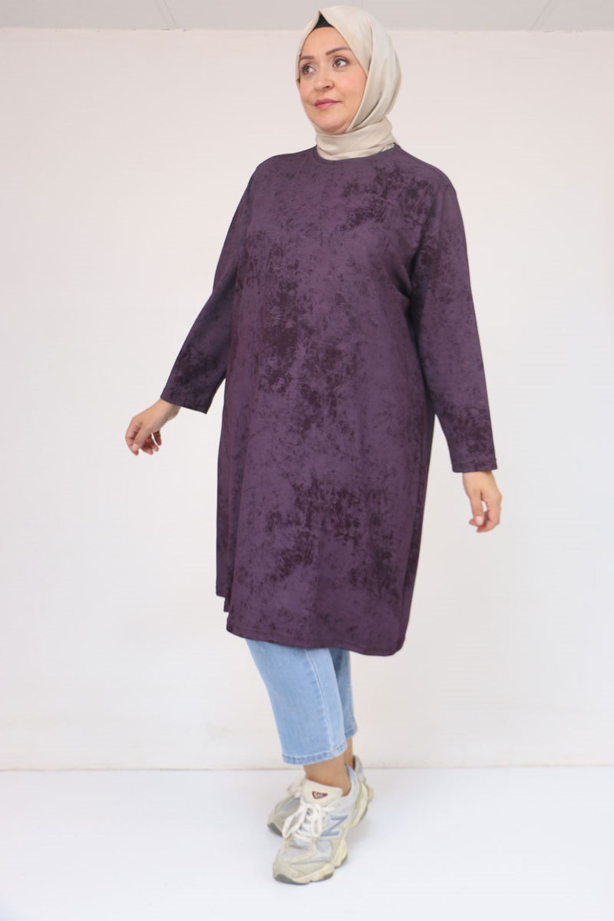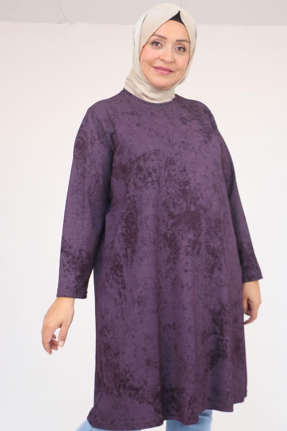 58153 Büyük Beden Basic Batik Modal Tunik - Batik Mürdüm