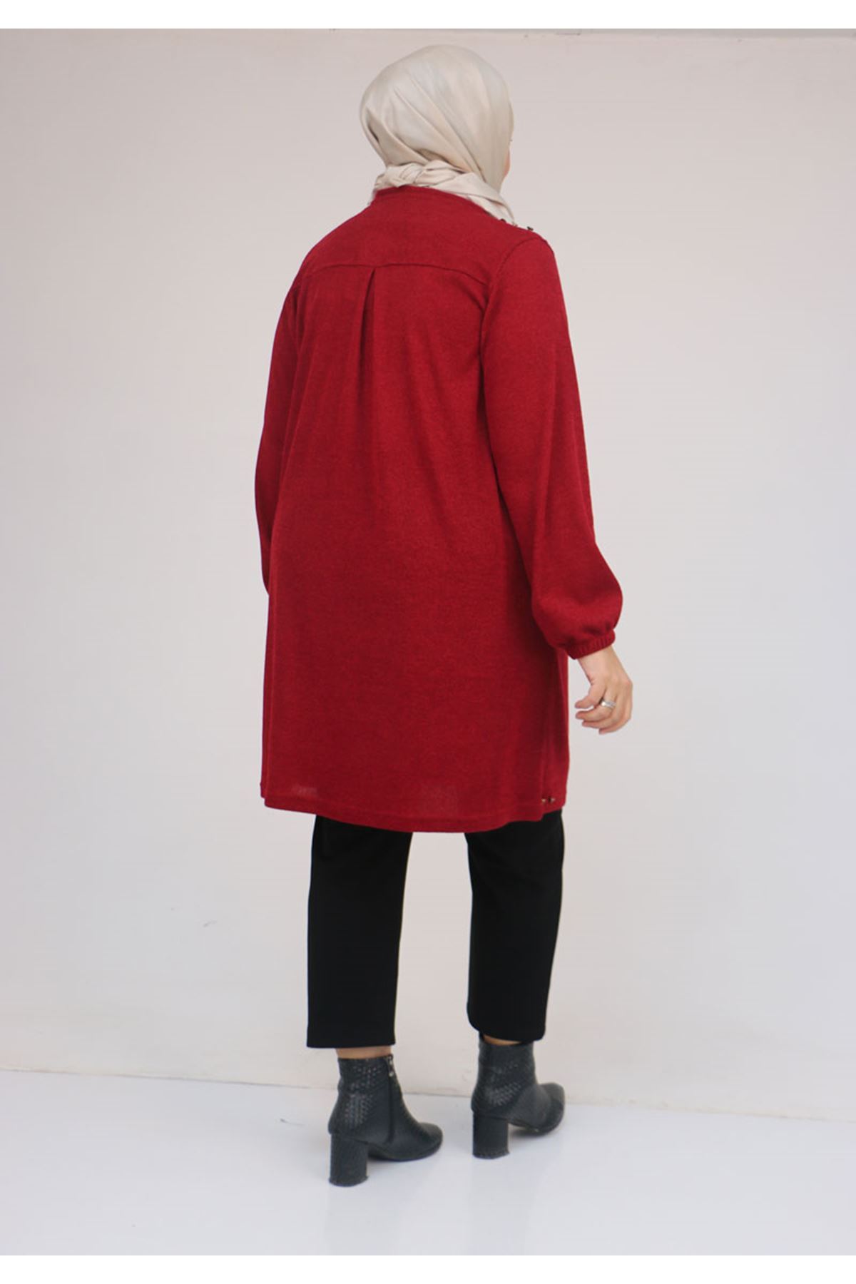 58155 Büyük Beden Kolları Lastikli Perçinli Mir Tunik - Bordo