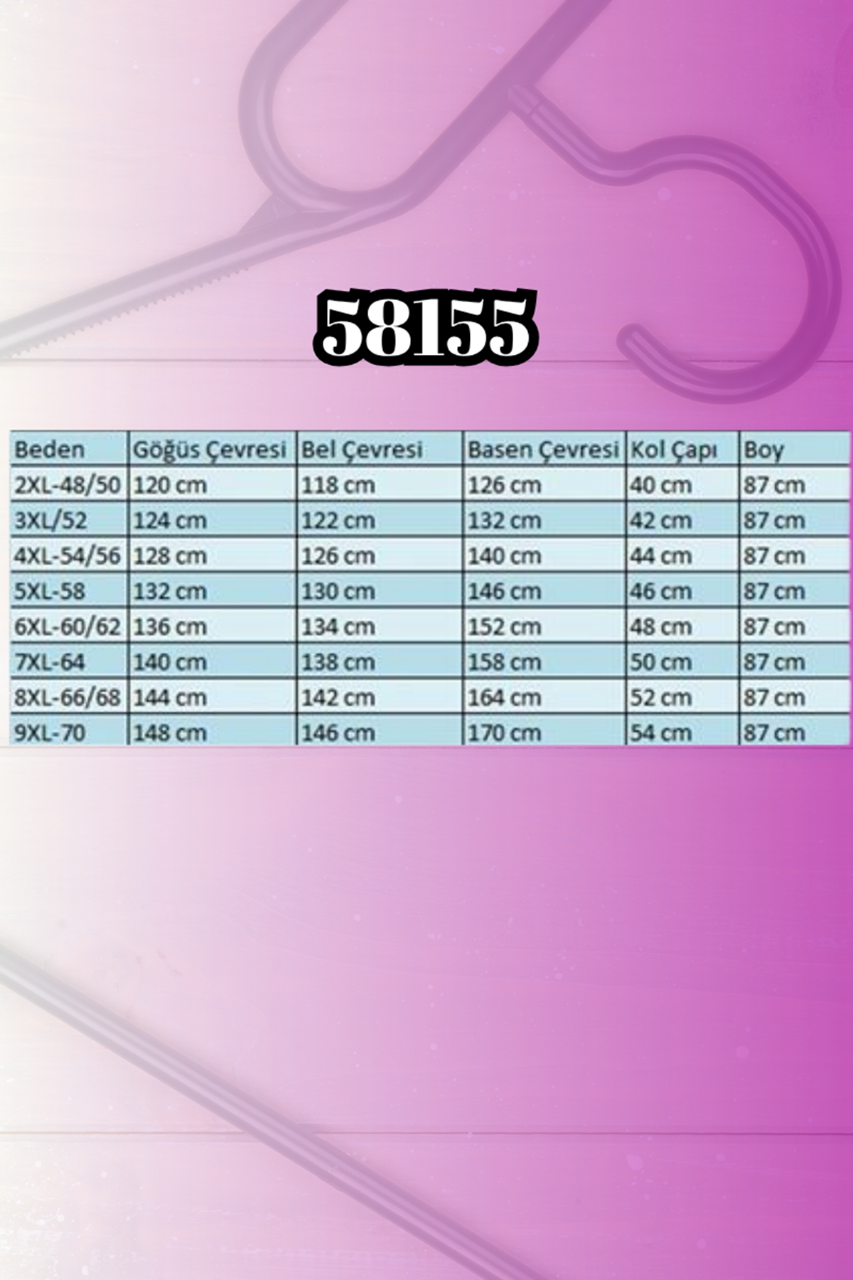 BEL GENİŞLİĞİ :88 cm GÖĞÜS GENİŞLİĞİ :103 cm BASEN :116 cm