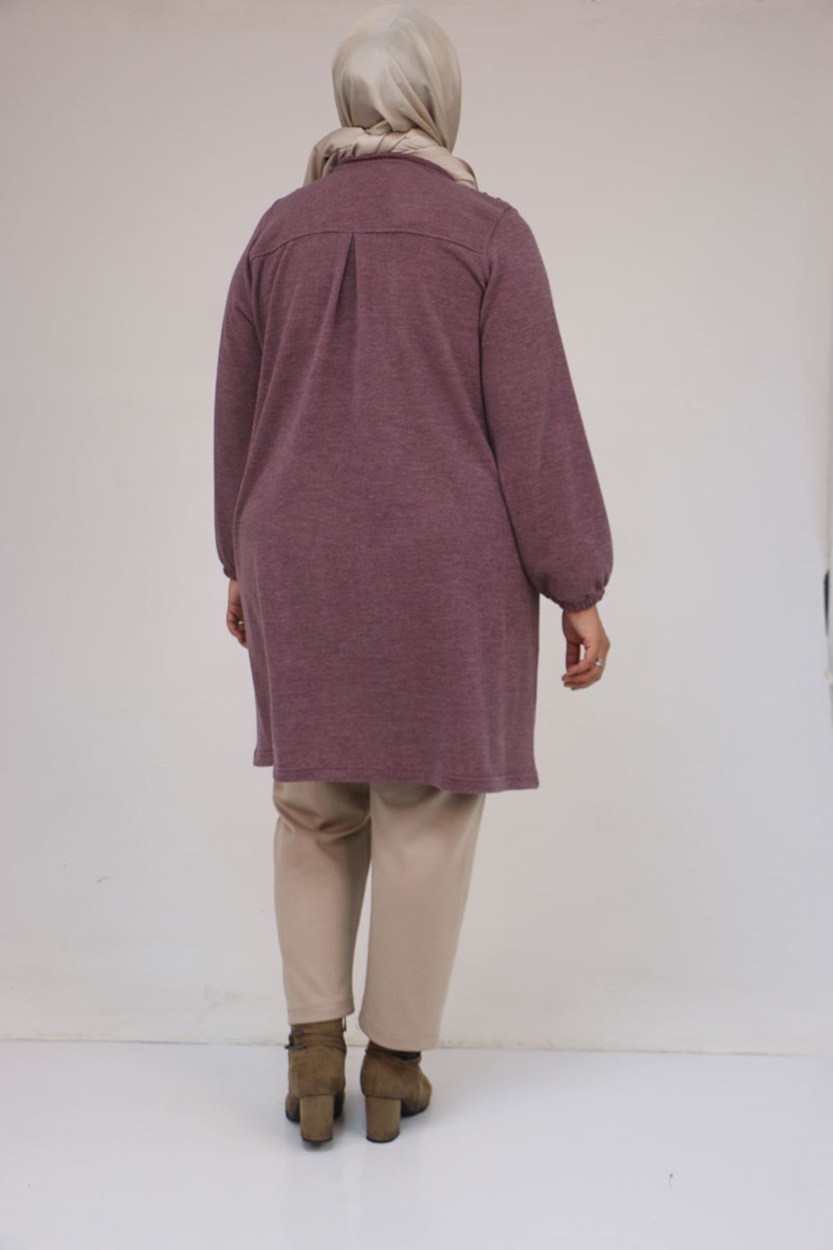 58155 Büyük Beden Kolları Lastikli Perçinli Mir Tunik - Gül Kurusu