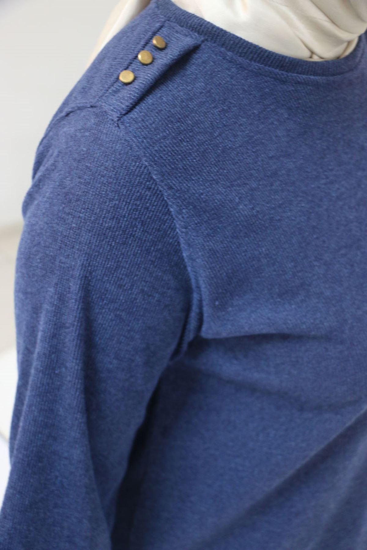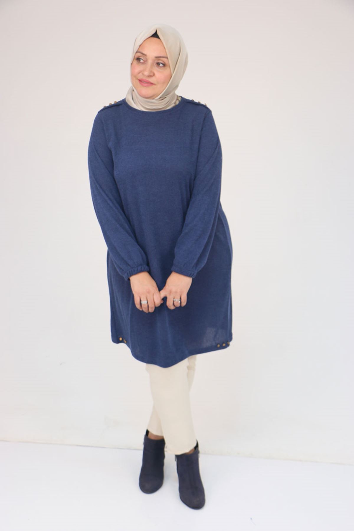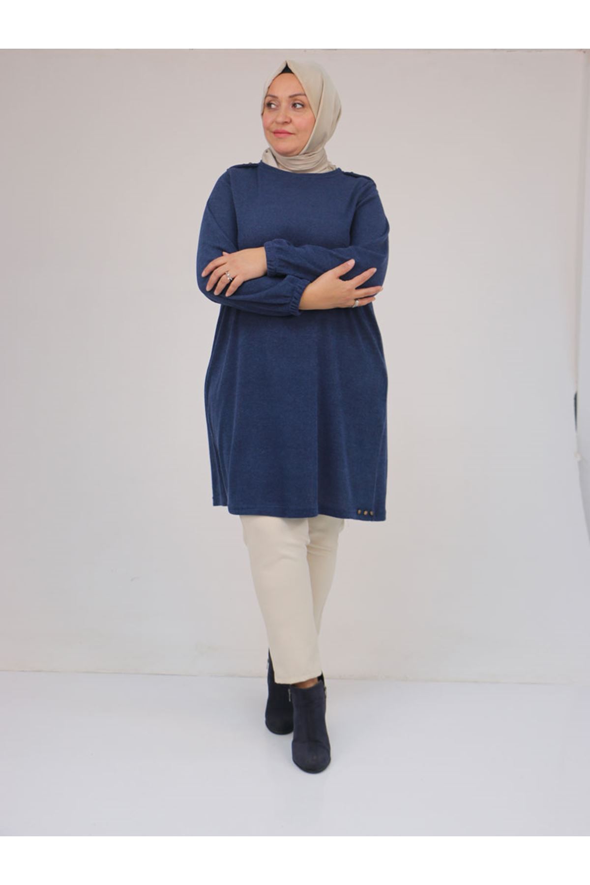 58155 Büyük Beden Kolları Lastikli Perçinli Mir Tunik - İndigo