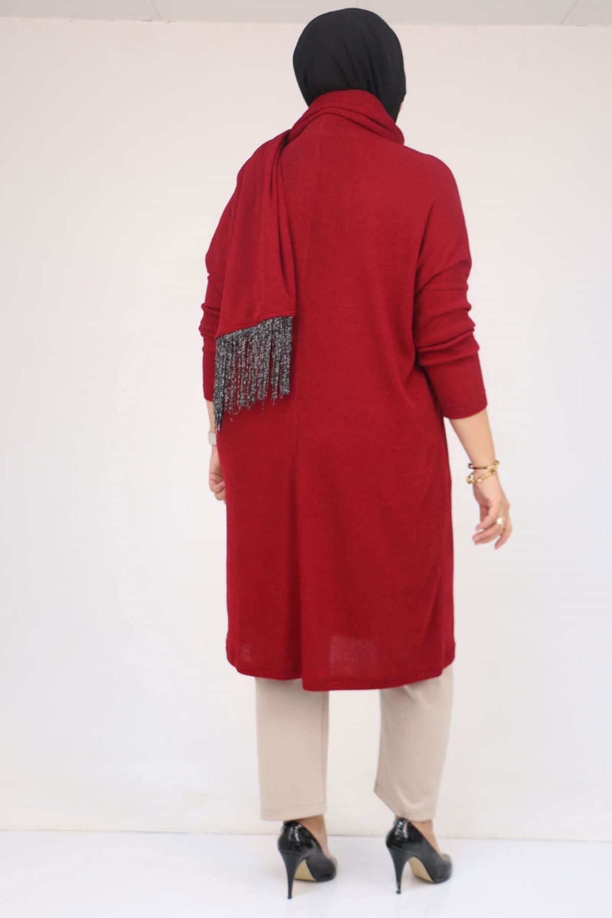 58158-1 Büyük Beden Atkısı Püsküllü Mir Tunik - Bordo