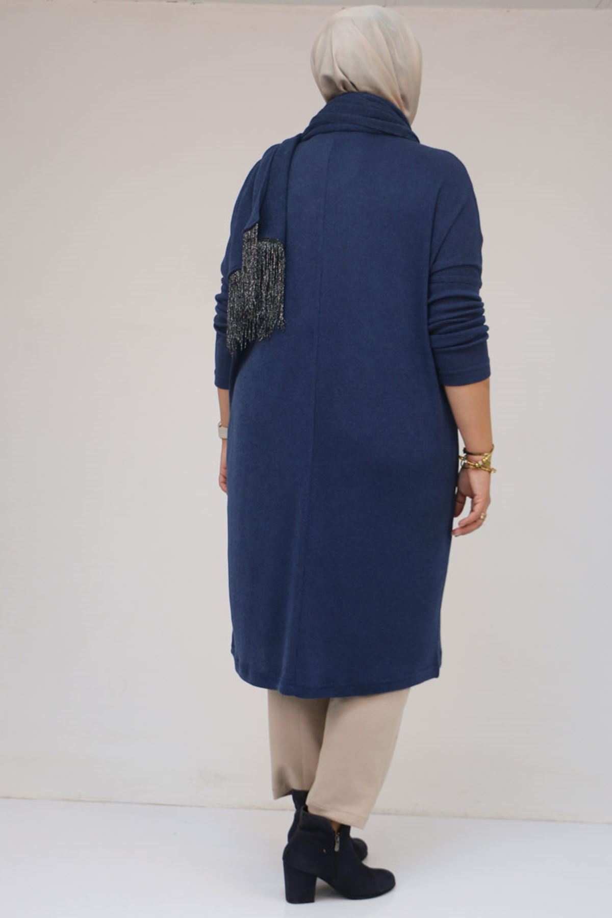 58158-1 Büyük Beden Atkısı Püsküllü Mir Tunik - İndigo