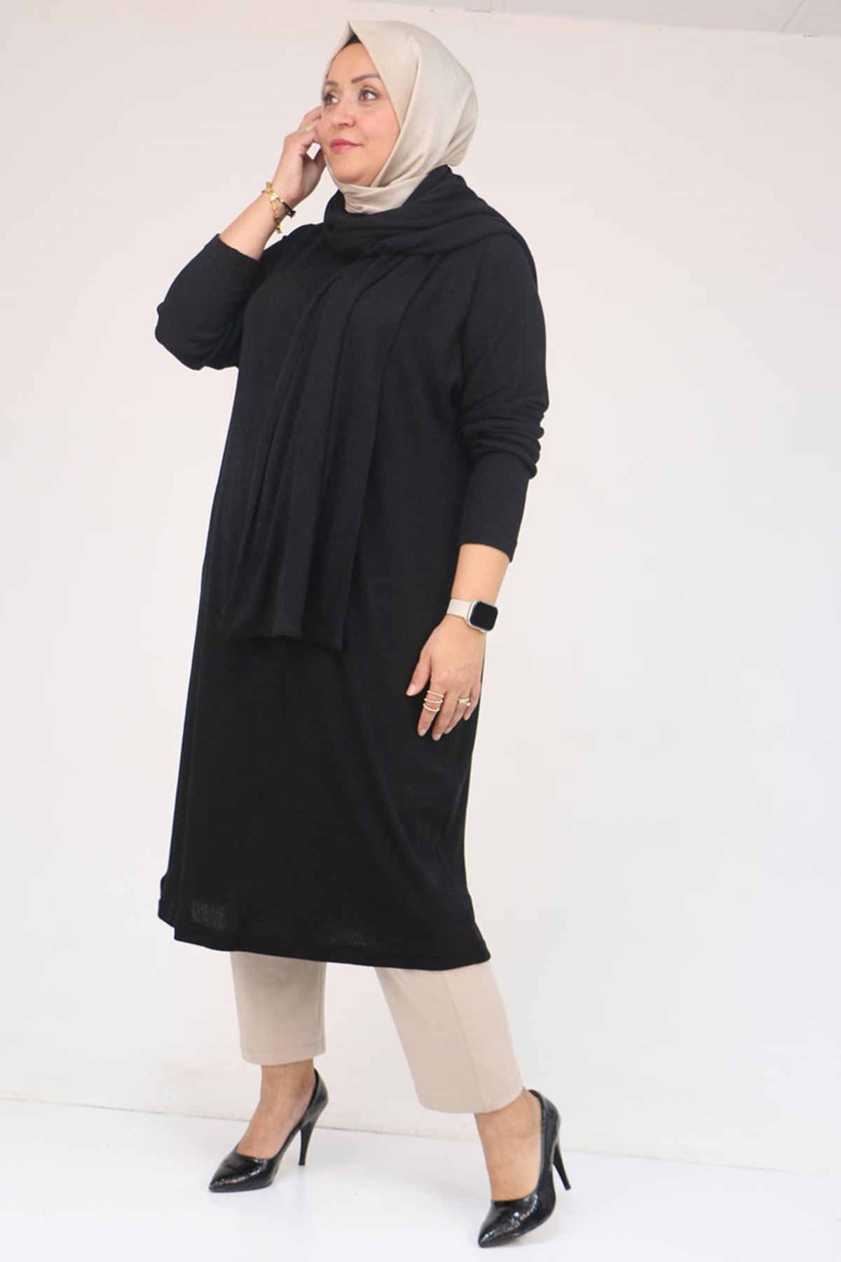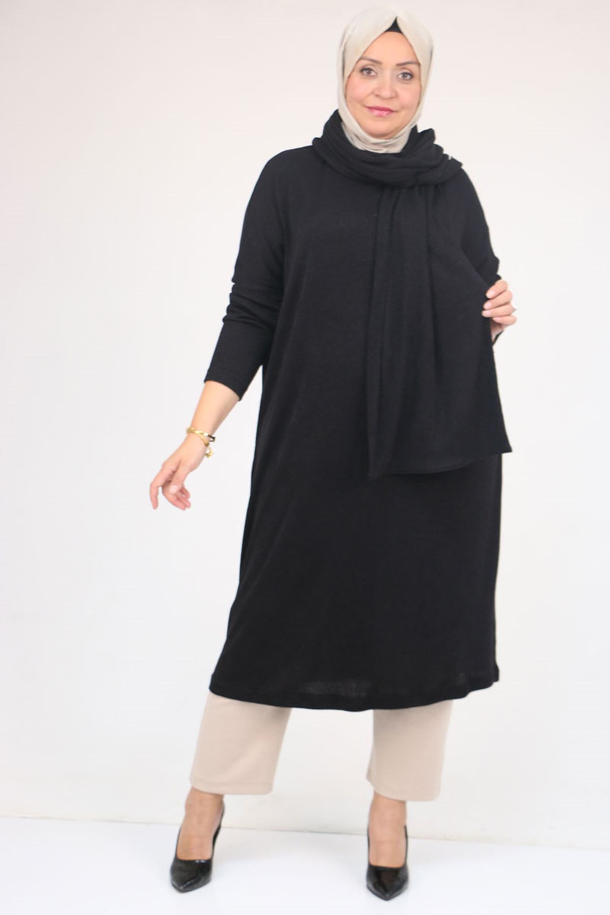58158 Büyük Beden Atkı Modelli Mir Tunik - Siyah