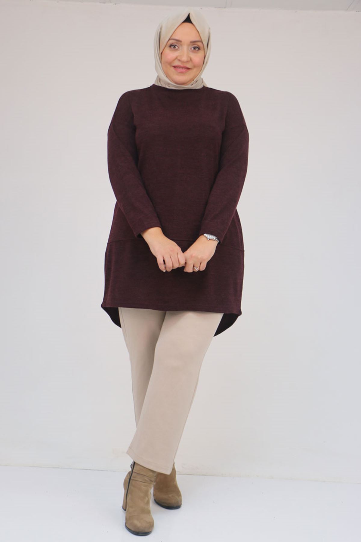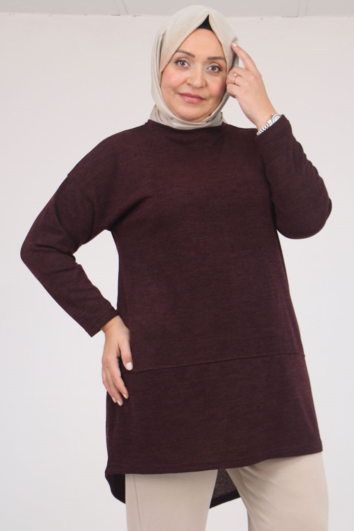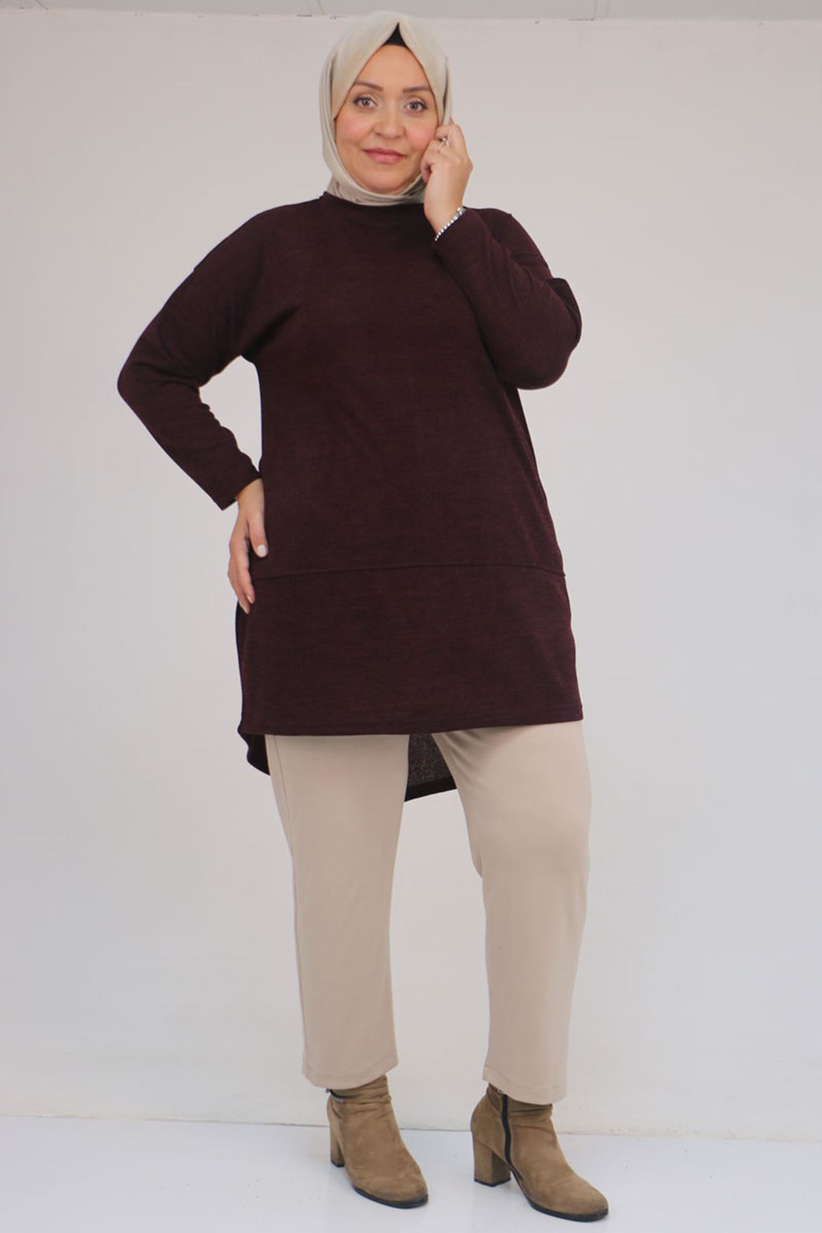 58166 Büyük Beden Makas Mir Tunik - Mürdüm