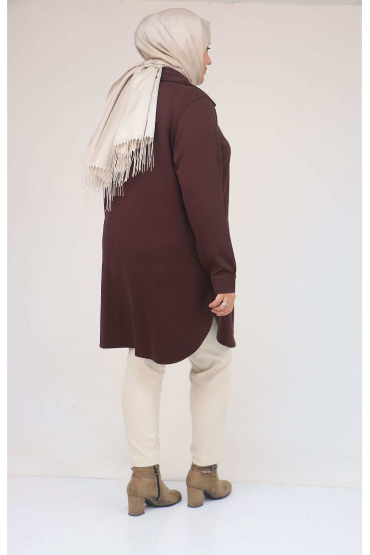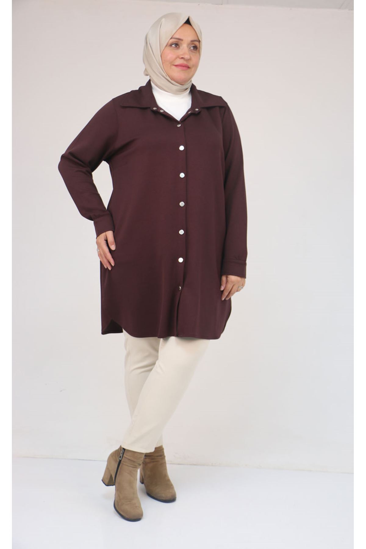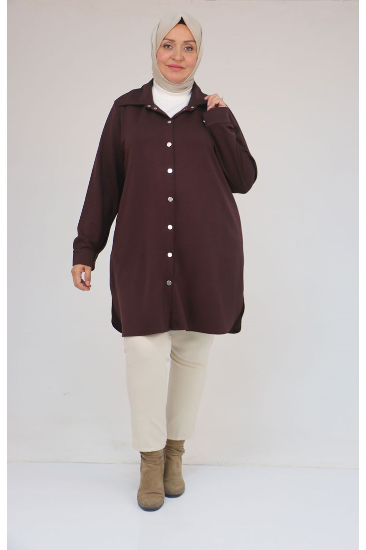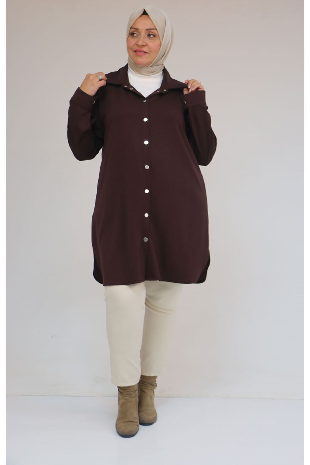 58168 Büyük Beden Erkek Yakalı Çıtçıtlı Modal Tunik - Kahve