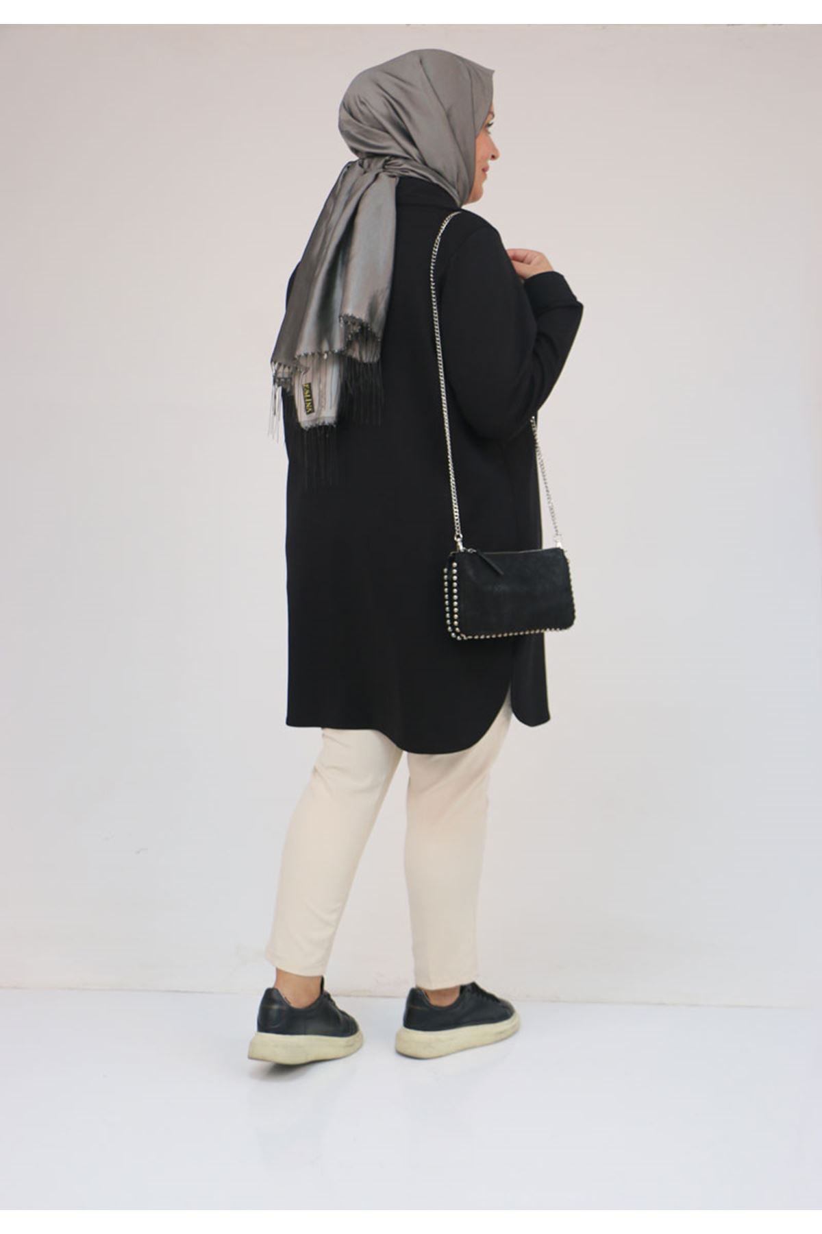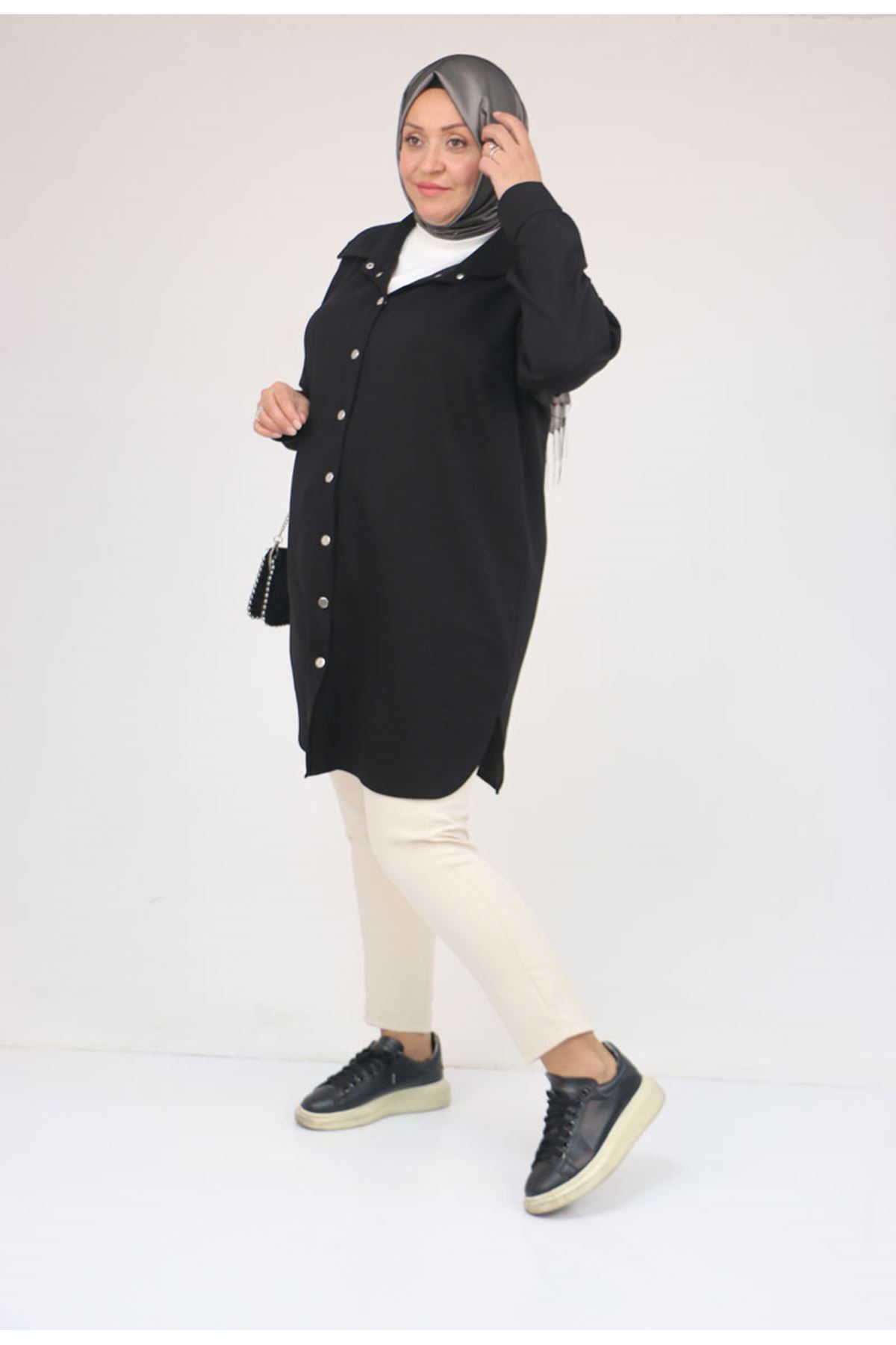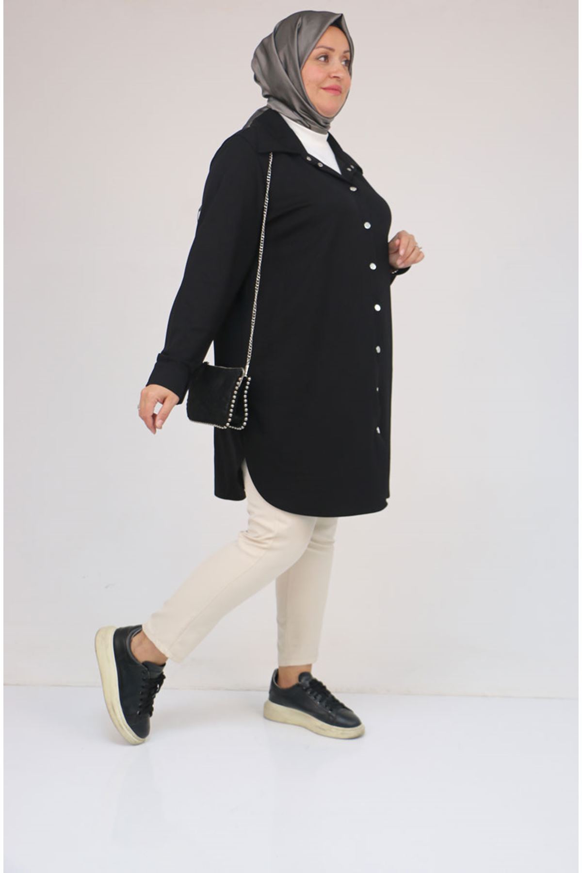 58168 Büyük Beden Erkek Yakalı Çıtçıtlı Modal Tunik - Siyah