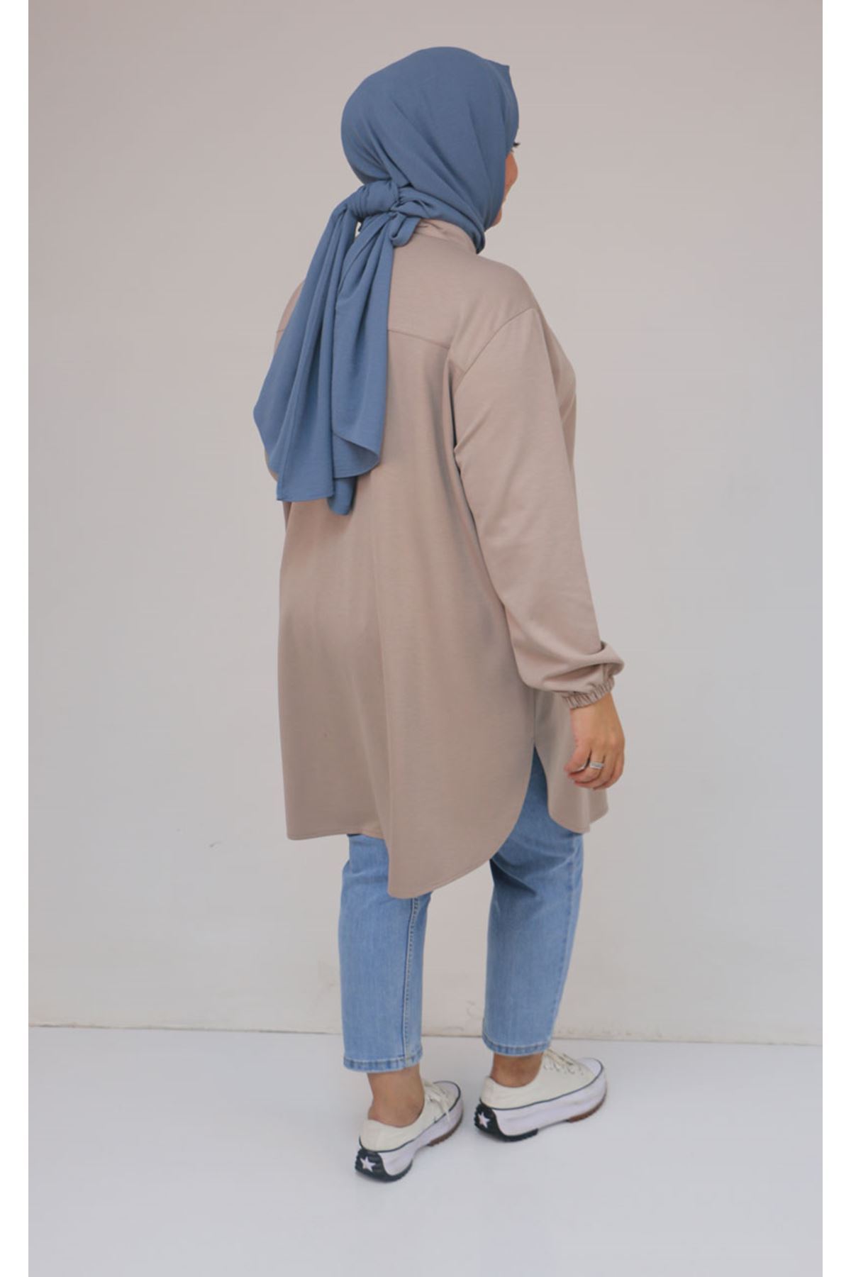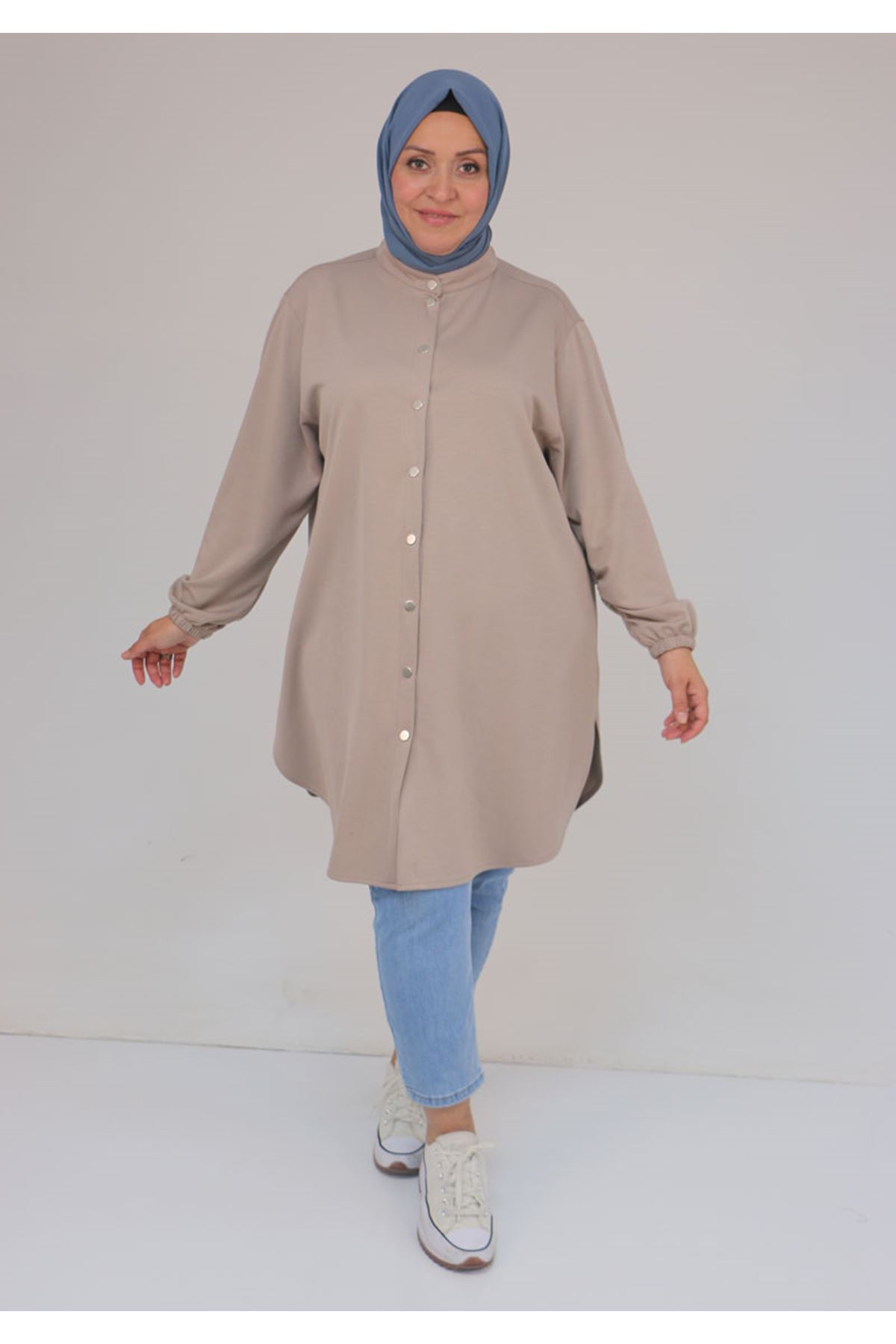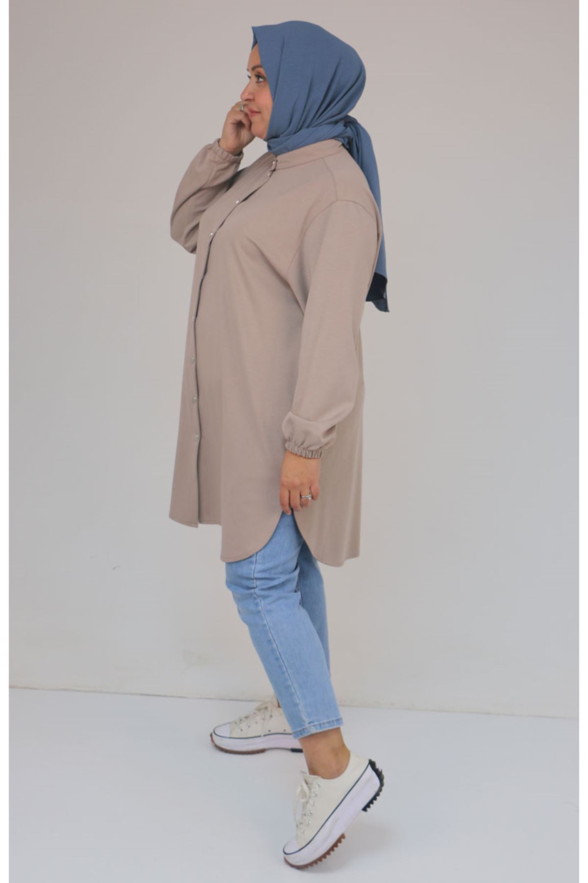 58169 Büyük Beden Hakim Yaka Çıtçıtlı Modal Tunik - Bej