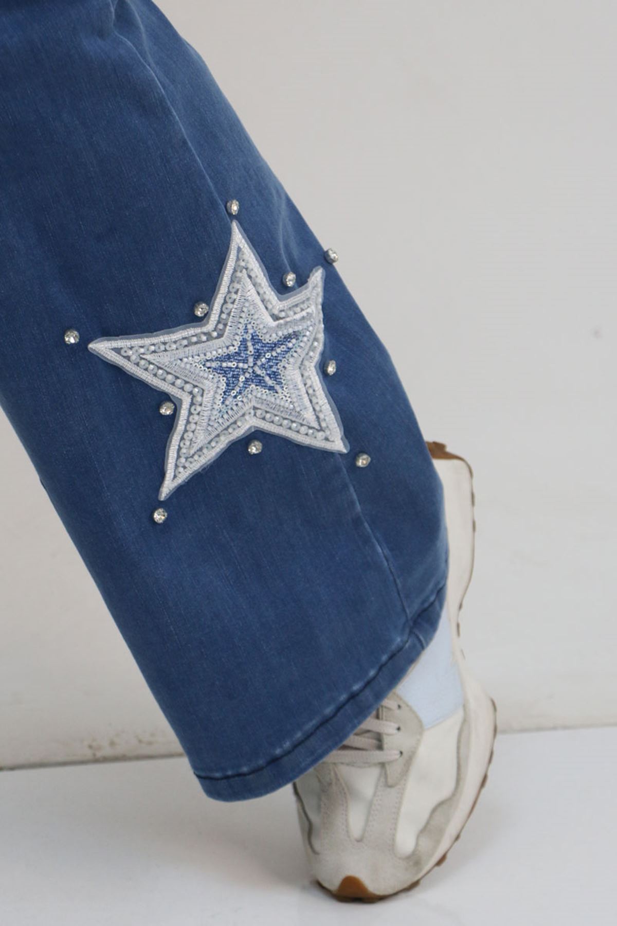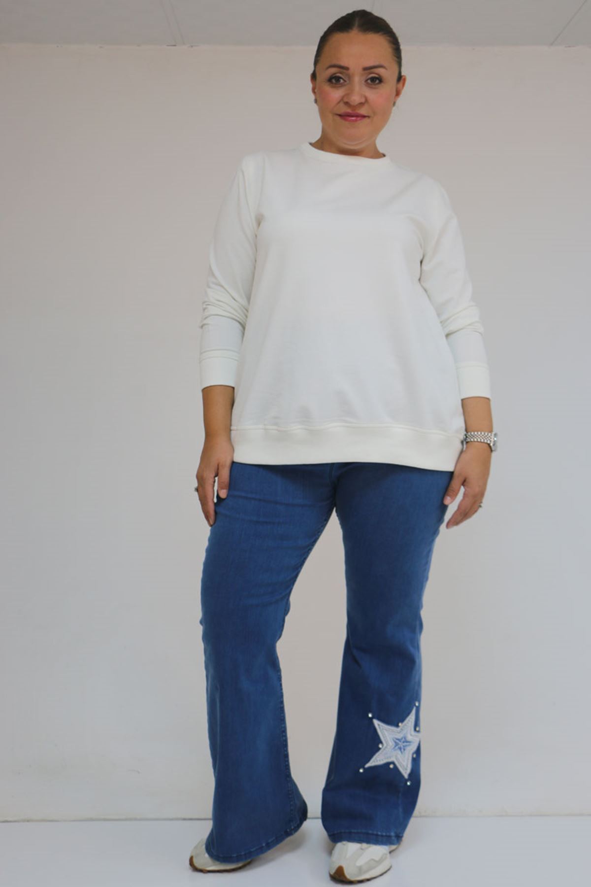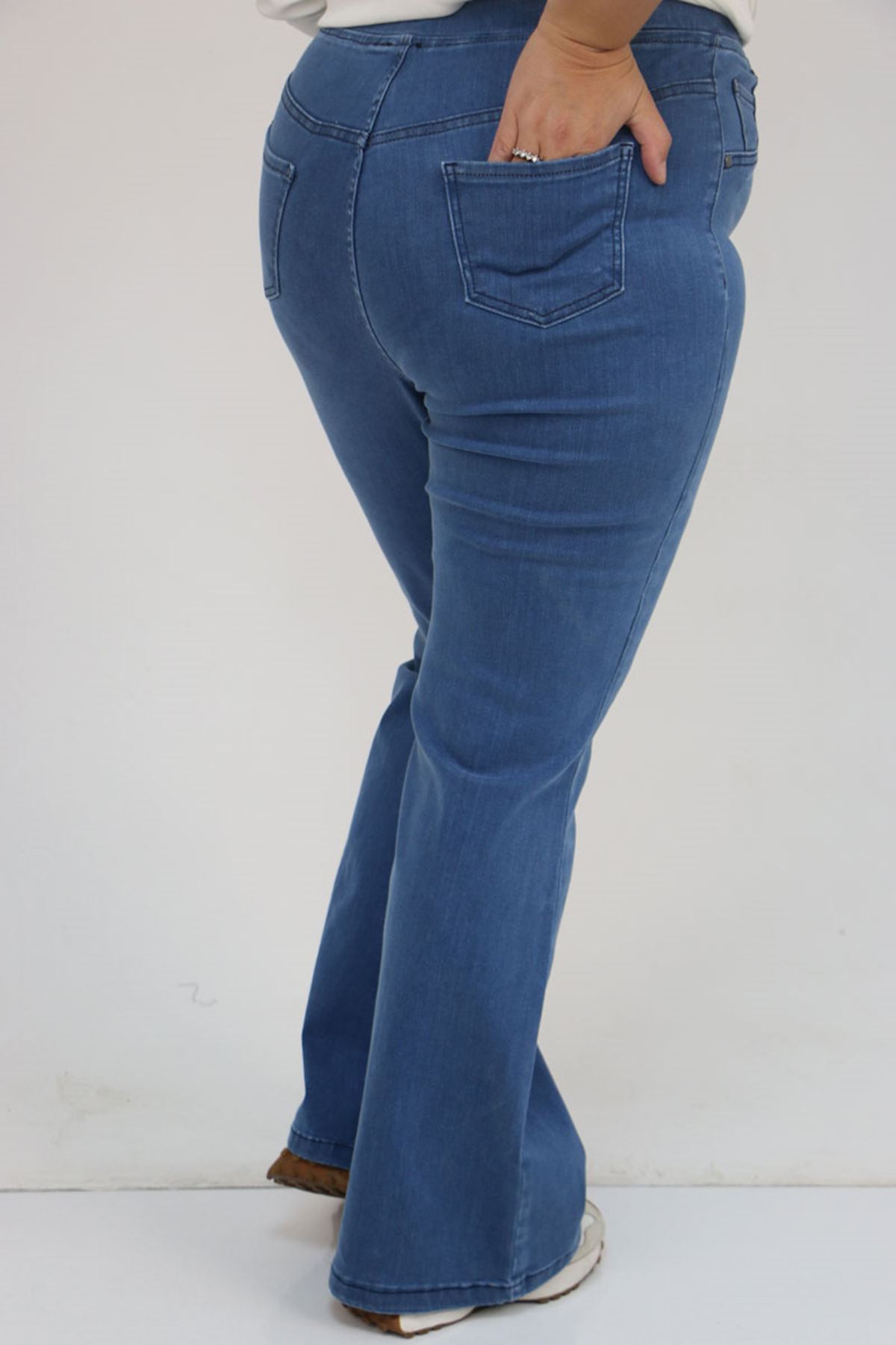 59033 Büyük Beden İspanyol Paça Aksesuar Detaylı Kot Pantolon - Mavi