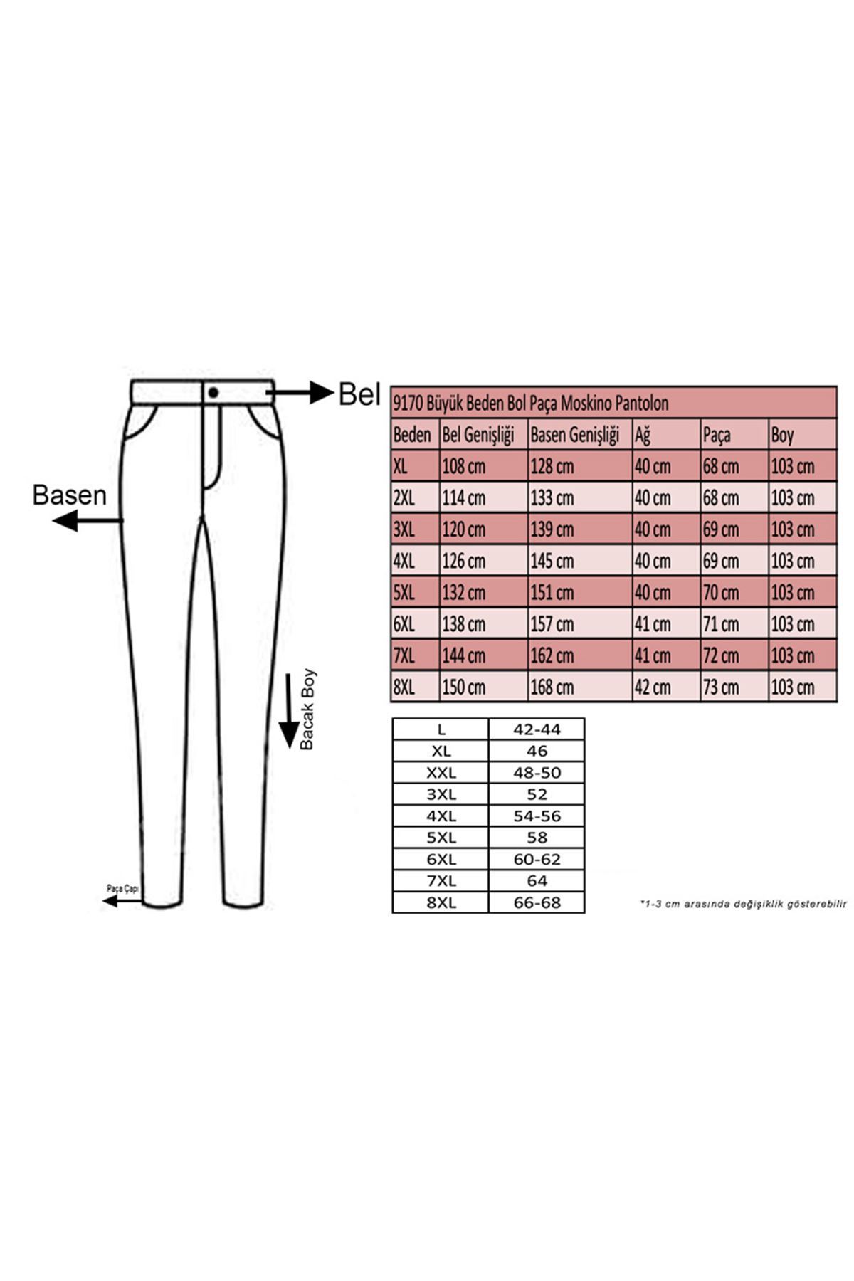 BEL GENİŞLİĞİ :88 cm GÖĞÜS GENİŞLİĞİ :105 cm BASEN :116 cm
