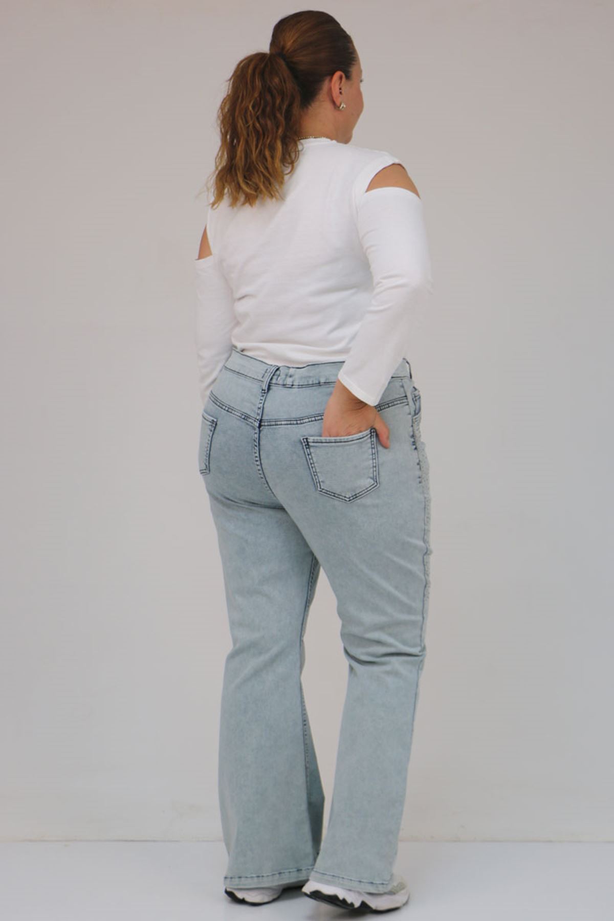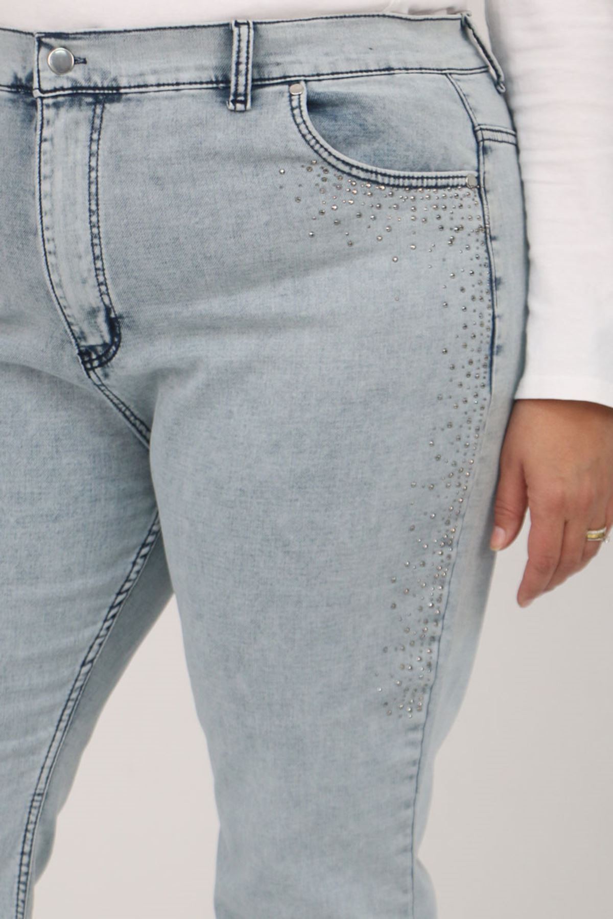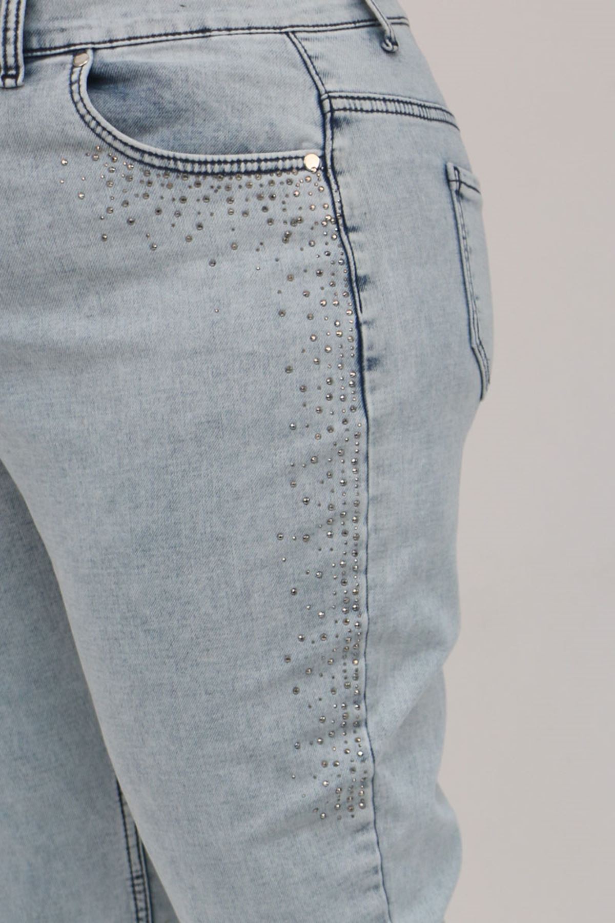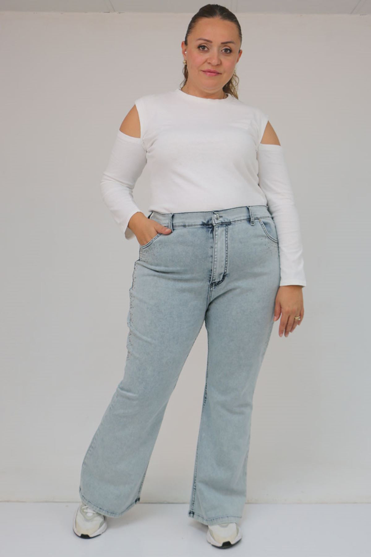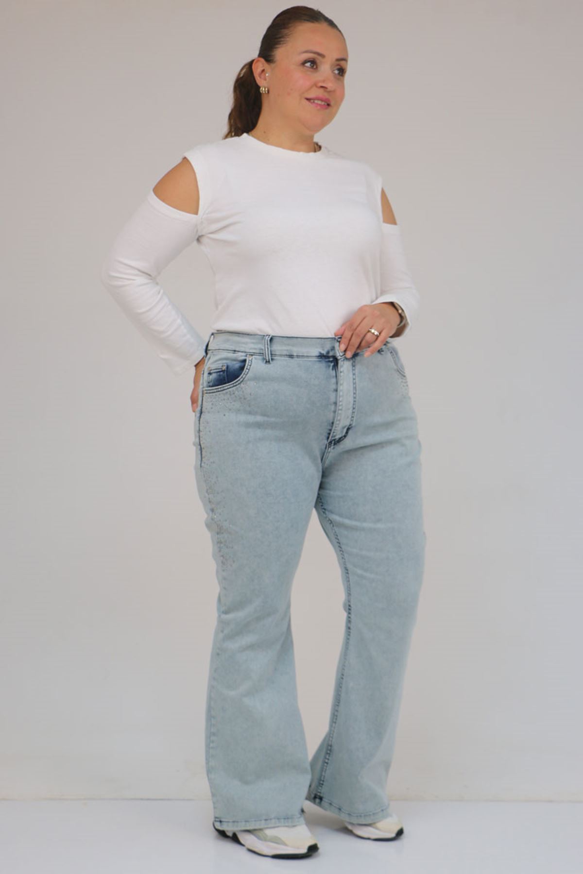9204-1 Büyük Beden Kemerli Taş Detaylı Kot Pantolon - Kar Yıkama Buz Mavi